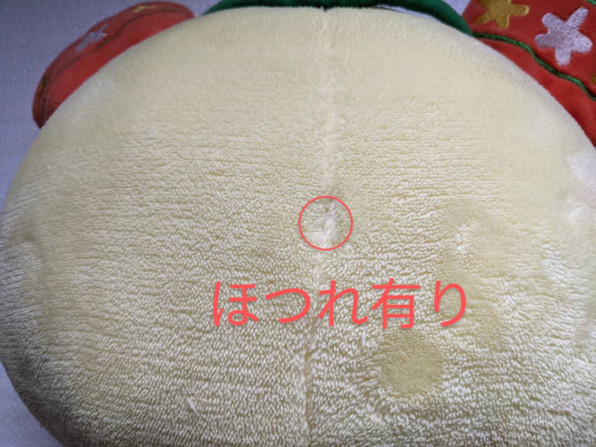 ぬいぐるみの状態は、景品獲得後ホコリの被らないようして部屋に飾ってましたのでキレイだと思いますが、うーたんの後頭部縫い目に約1cm程度ほつれがあります。