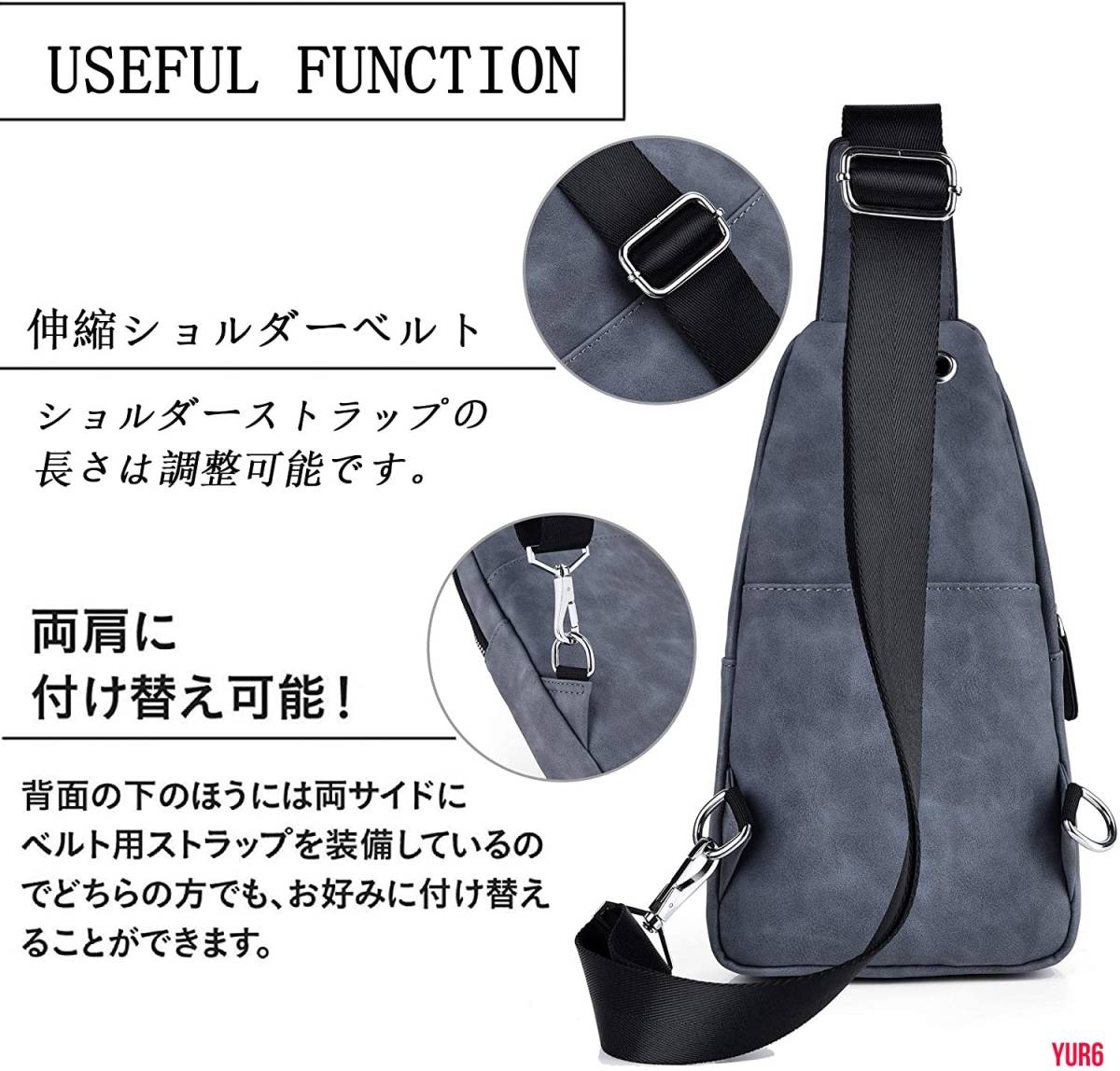 大容量 スタイリッシュ ボディバッグ 盗難防止 隠しポケット ショルダー左右付け替え可 防水性 耐摩耗性 普段使い お買い物 通勤 ブルー