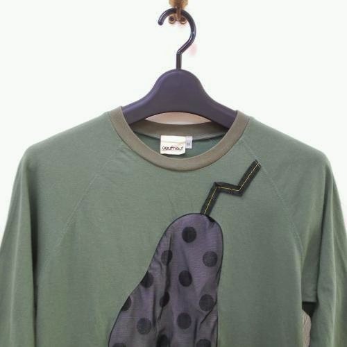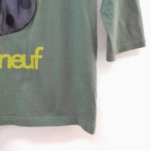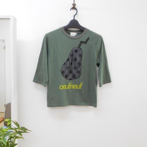 ウフヌフ oeufneuf ワッフリッシュワッフル WAFFLISH WAFFLE 春夏秋頃に着て頂けそうな七分袖カットソーです。お色はグリーン系に前のチュールドット柄のフルーツが可愛い一品です。