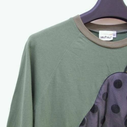 ウフヌフ oeufneuf ワッフリッシュワッフル WAFFLISH WAFFLE 3XL 七分袖 カットソー グリーン 系 チュール ドット トップス