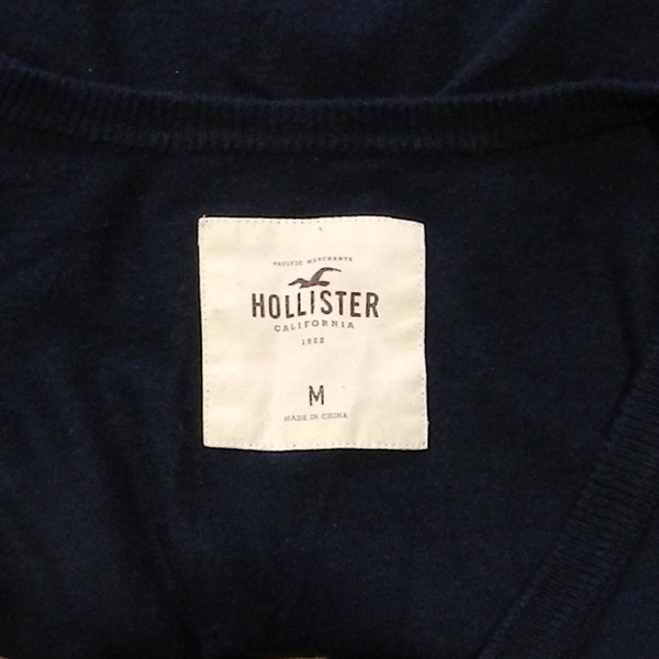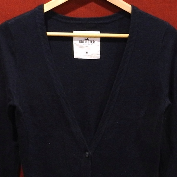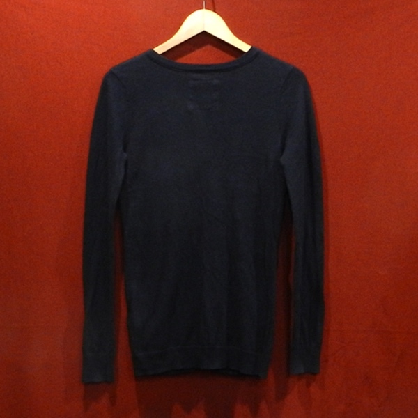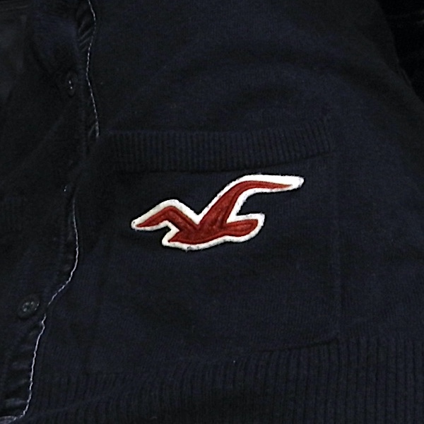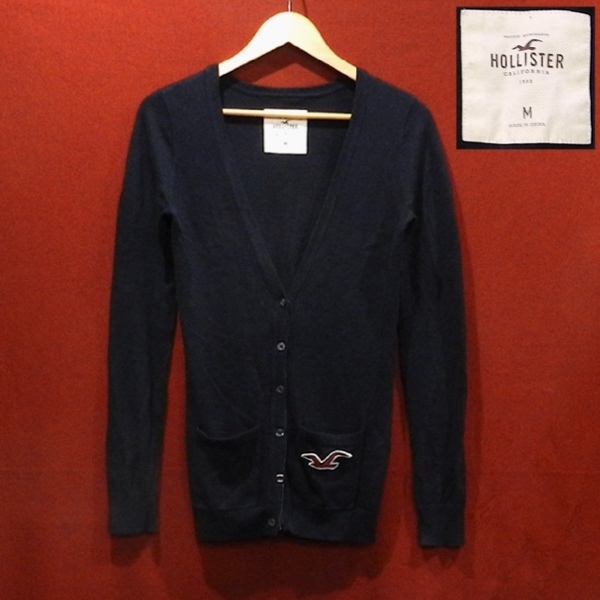 HOLLISTER ホリスター コットン ビスコース ロゴ パッチ 薄手 ニット カーディガン 紺 レディース M サイズ