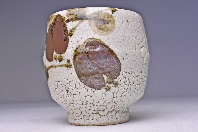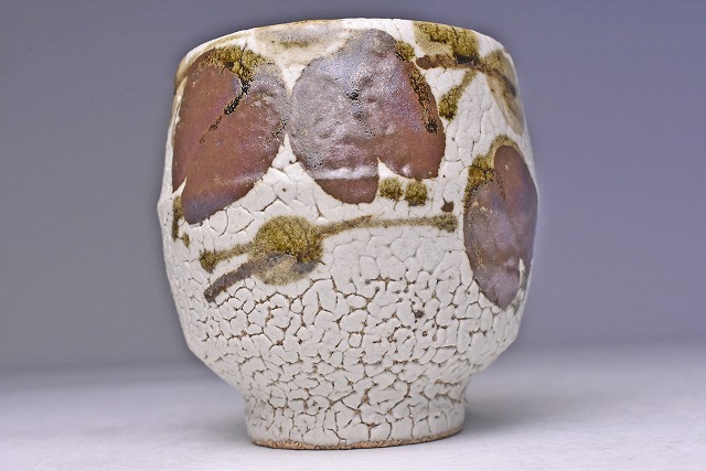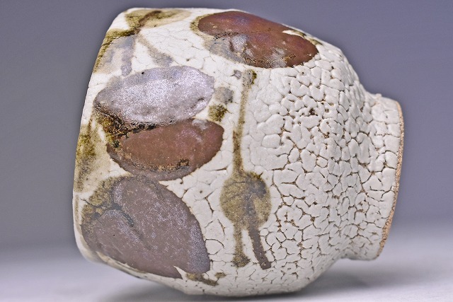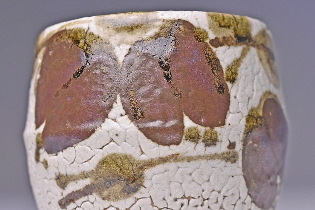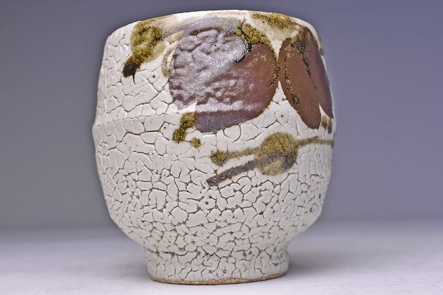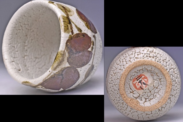 梅花皮の 釉景に アケビ文が 味わいのある 逸品です。