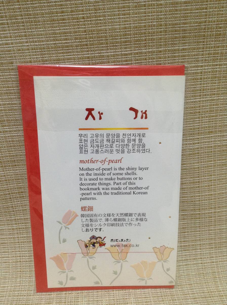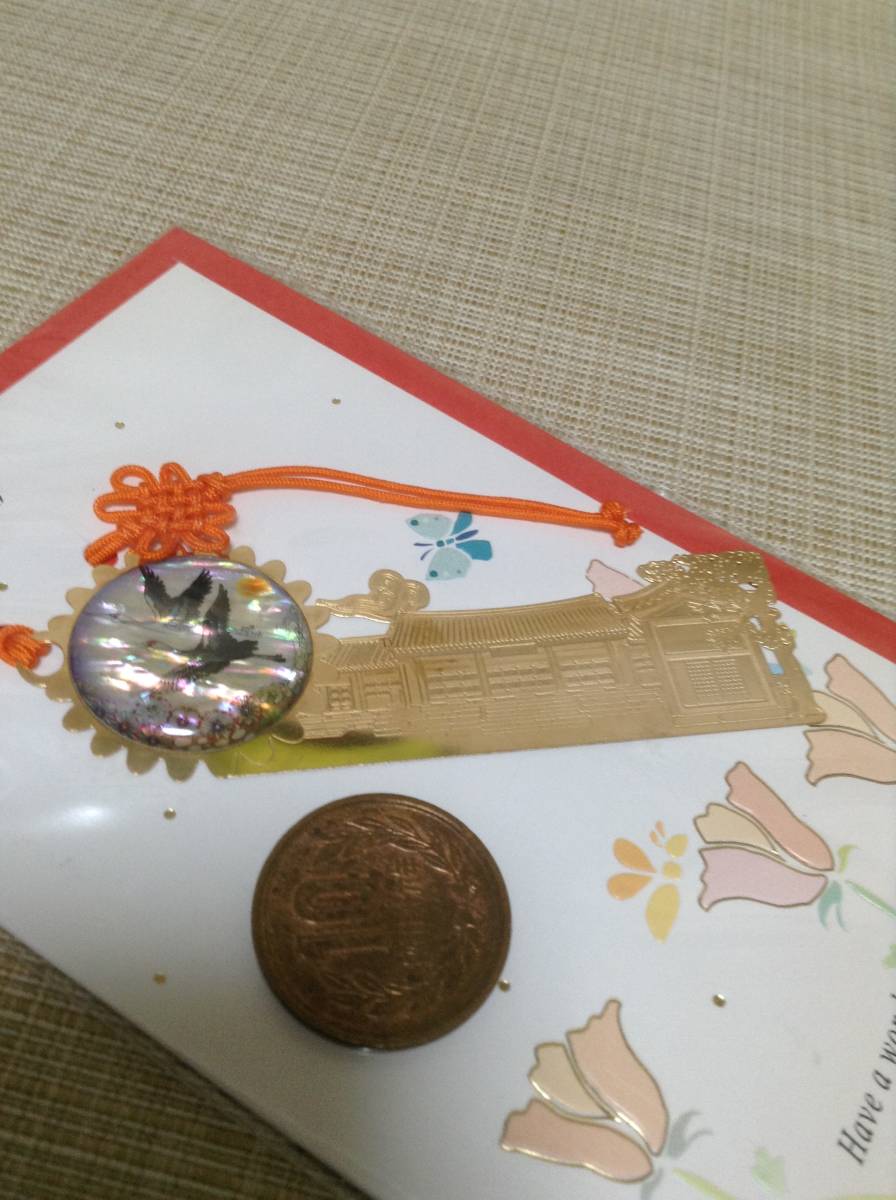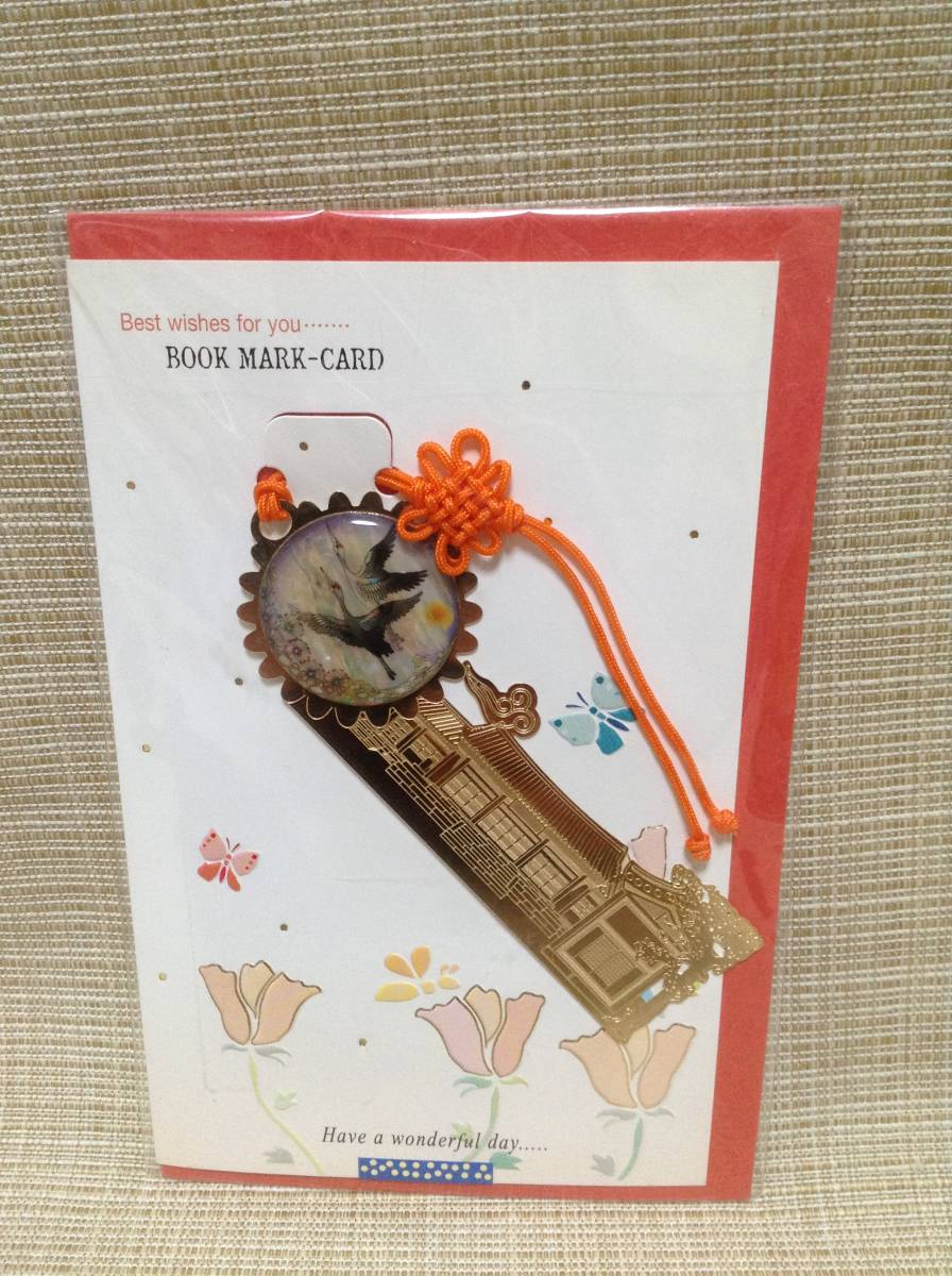ブックマークカード 天然螺鈿製品 シルク印刷技法 しおり,栞,ブックマーカー 韓国(?) 建物 鶴(?)