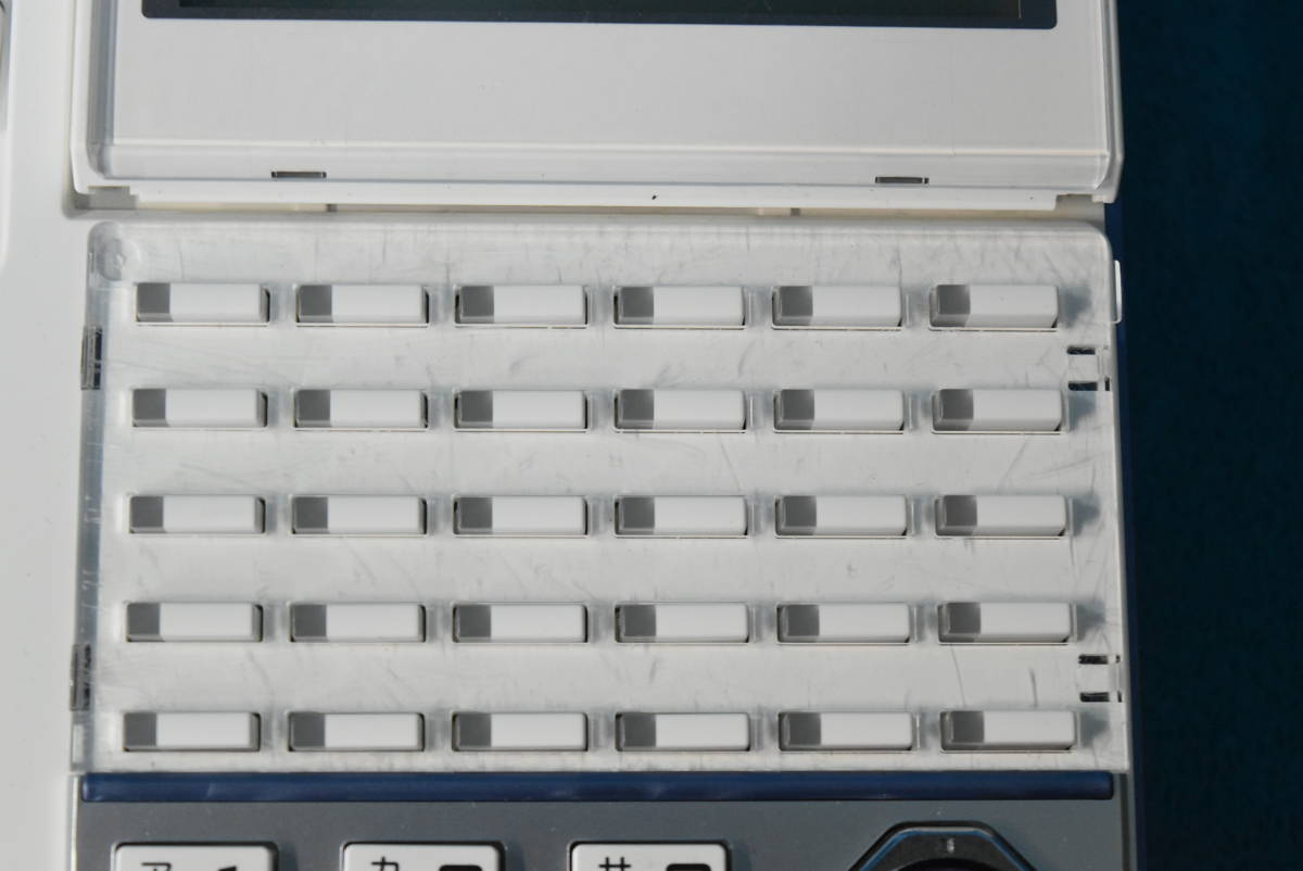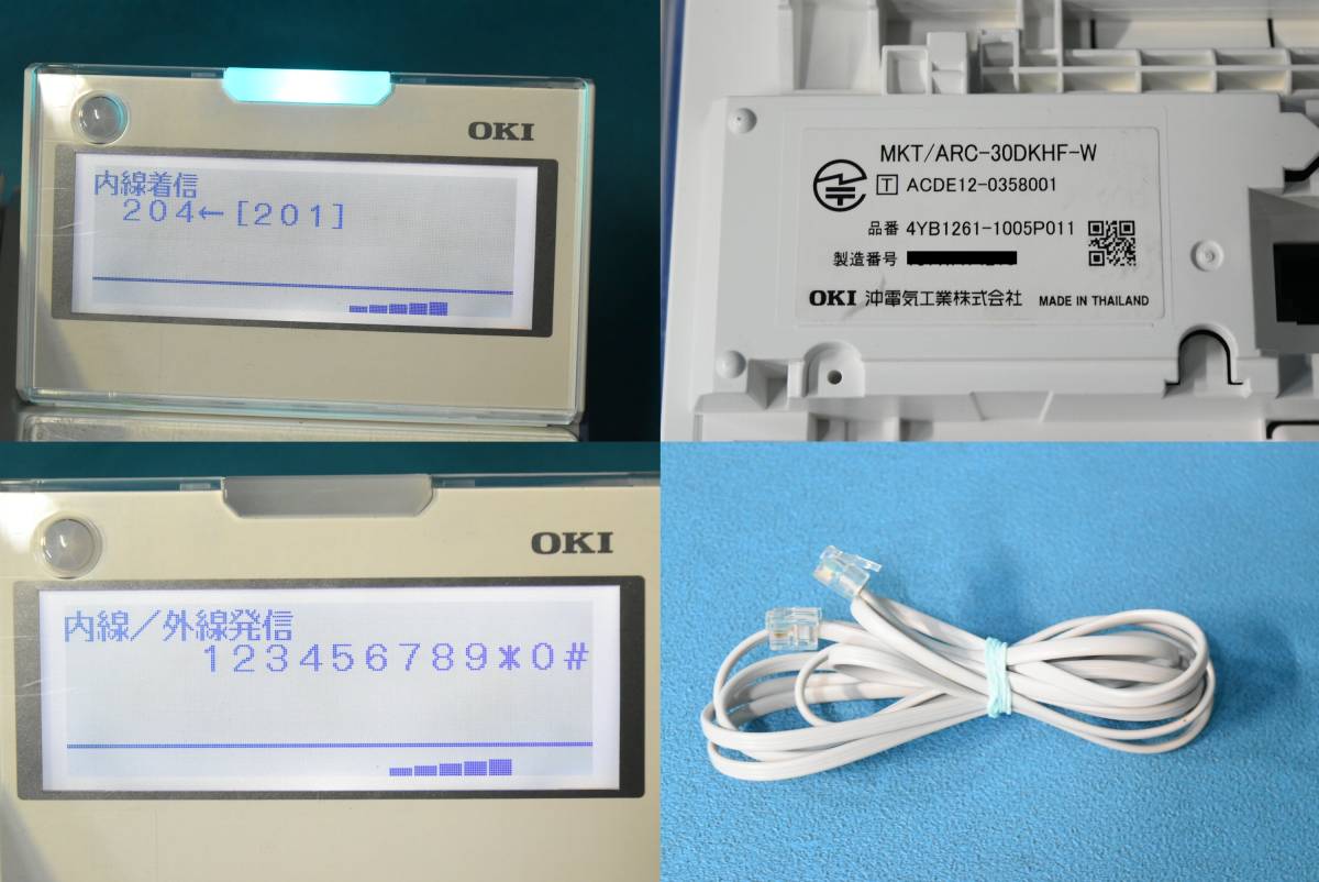 ■メーカー : OKI/沖電気工業 ■商品名 : ビジネスフォン/30ボタン多機能電話機 ■型番 : CrosCore/クロスコア 【MKT/ARC-30DKHF-W】 ■付属品 ・モジュラーケーブル(電話線) ※写真に写っている物で全てです。 ■発送サイズ : 60サイズ ※若干ですが、ドライバーなどによってサイズが前後する場合がございます。予めご了承ください。 ※送料につきましてはこちら(ゆうパック料金表)にてご確認ください。 ■対応主装置 ・CrosCore S (KH010S-BSCAB) ・CrosCore M (KH010M-BSCAB) ・CrosCore L (KH010L-BSCAB) ※その他、OEM版など、他の主装置でも対応可能な物がある可能性がございます。 詳しくは直接メーカーなどにお問い合わせください。 ■主な特徴/仕様 ◎「CrosCore(クロスコア)」は、豊富なビジネスホン機能と多彩なコミニケーション端末に加え、インターネットやIP電話への接続、さらに侵入者感知や緊急地震速報などのセキュリティ機能も提供できる、数人から400人までの幅広いオフィスにおいてコミュニケーションの中核となるシステムです。 ○ビジネスシーンに合わせて選べる多彩な端末をご用意 ○バックライト付き大型ディスプレイ ○見やすい角度に調整 ○応答前に、着信ランプで相手を確認 ○10000件の漢字電話帳 ○電話帳からワンタッチで発信 ○多彩なメロディ ●サイズ(mm): 約181×229×82 ●質量: 約840g ■商品状態・動作確認事項 ●簡単な動作確認 ⇒ OK。(下記参照) ・通話確認OK。(内線着信&発信にて確認しました) ・スピーカー確認OK。 (ボタンプッシュ音、着信鳴動、スピーカーフォンにて音が出るのを確認しました) ・ハンドセット確認OK。 ・画面確認OK。(バックライトもOK) ・各ボタン確認OK。 ・上部ランプ確認OK。 ※専門知識・動作環境が無い為、簡単な動作確認のみとなります。 上記以外の動作確認はしておりませんので、消耗品や不備がある部分、動作確認を行っていない部分につきましてはノークレームにてお願い致します。 ■管理番号: M-498 ※当方の管理番号となります。 商品内容とは関連はございません。 |