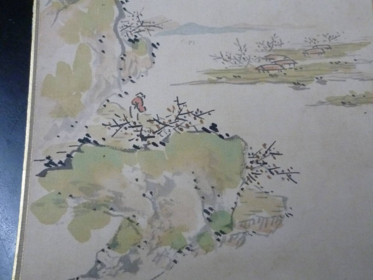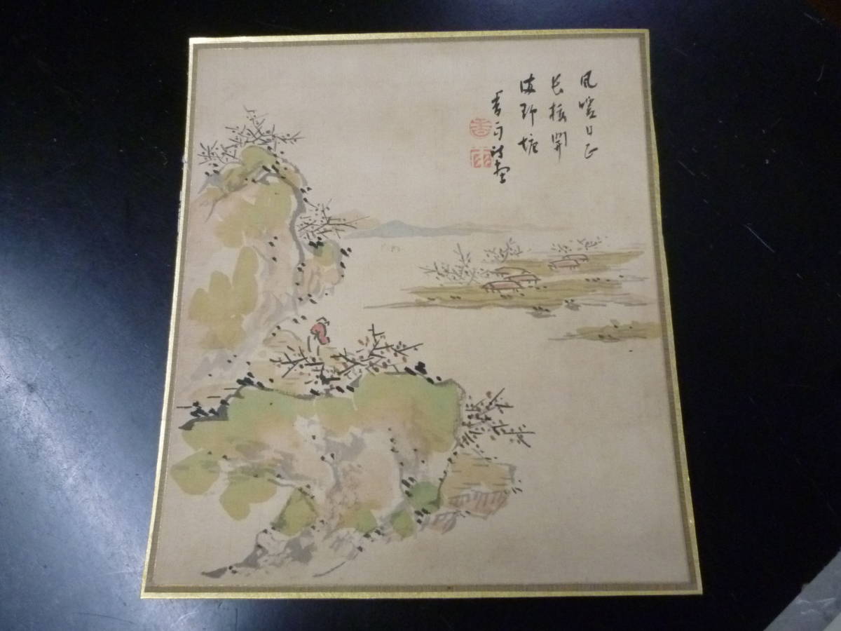 22 P №C 明治期 「山水画」 絹本 香梅