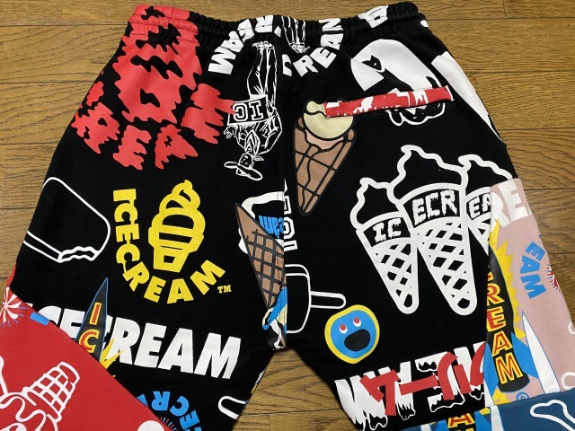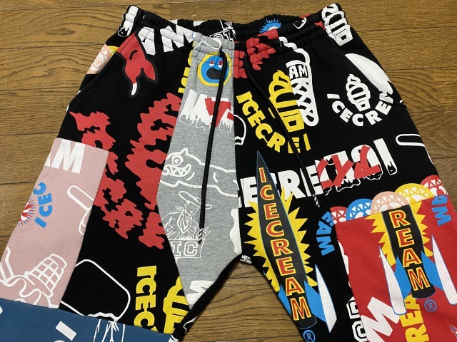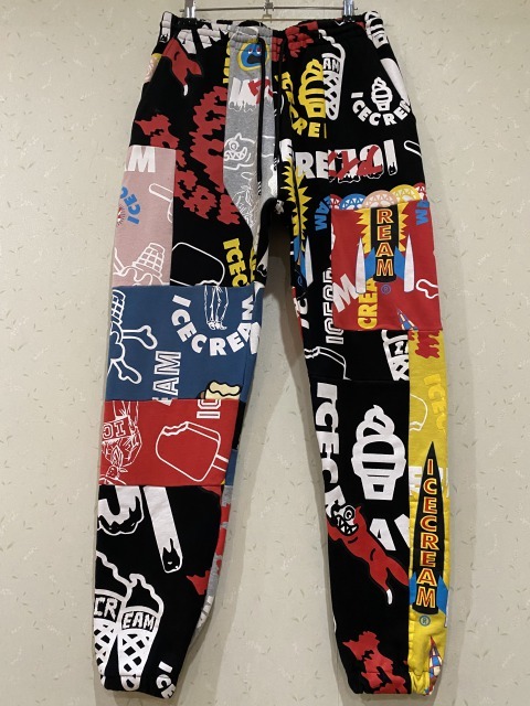※ICE CREAM アイスクリーム ランニングドッグ 総柄 ジョグ スウェット パンツ M              BJBA.AB