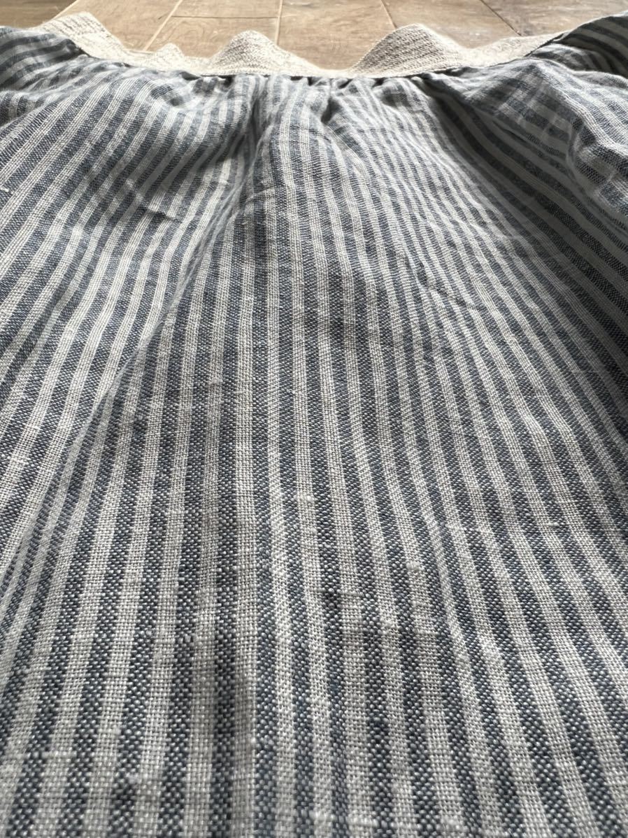 オフホワイトのリネン生地に薄い淡いストライプが控えめながらもしっかり主張しています。