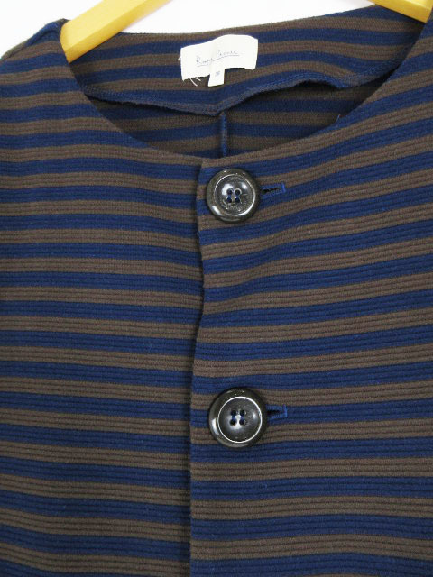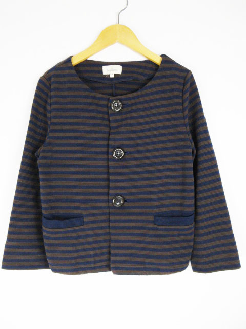 | 【ロペピクニック ROPE' PICNIC】 ジャケット ノーカラー ボーダー 38 紺 茶 ネイビー ブラウン | |