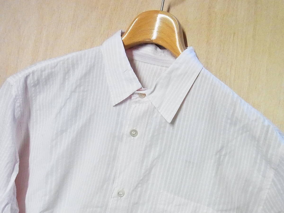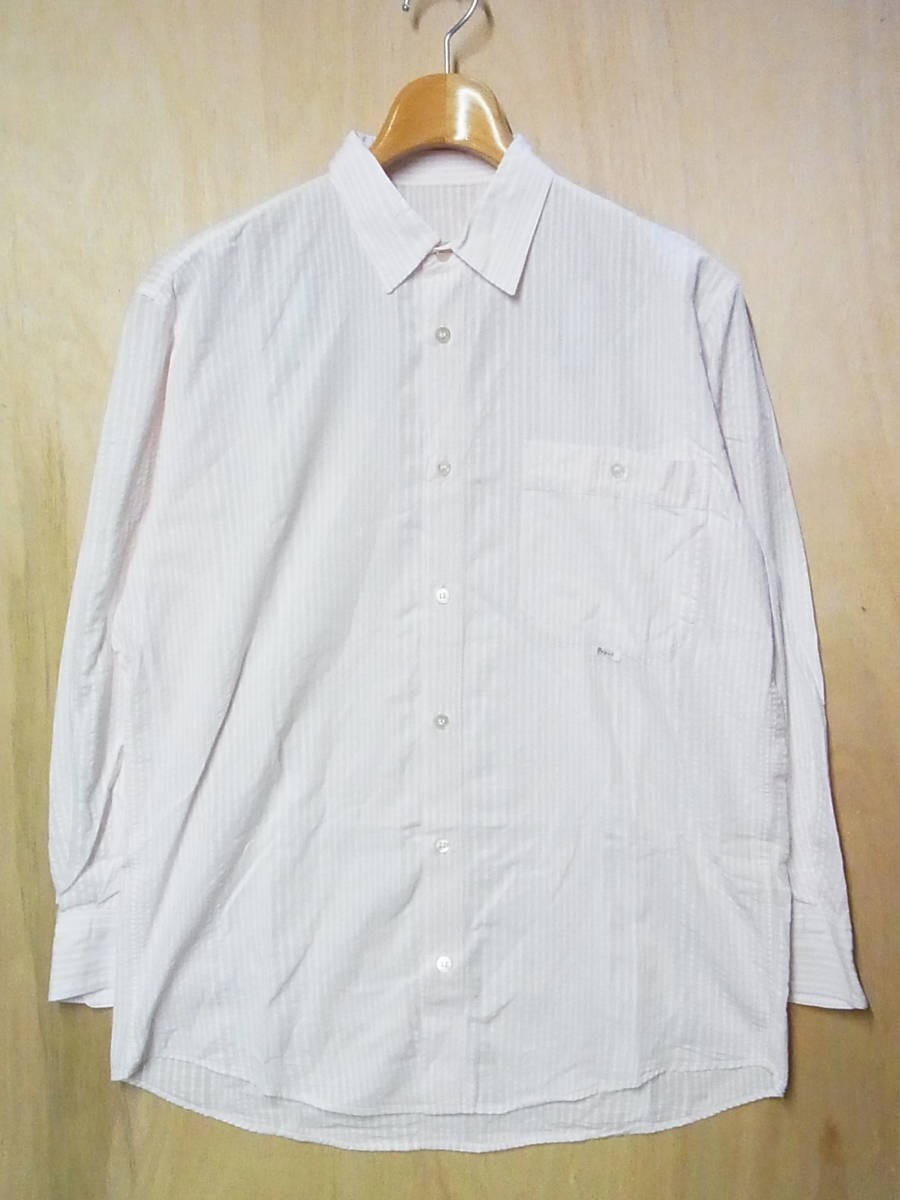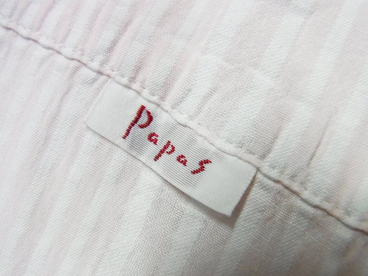 | 綺麗 papas パパス コットンxリネン ストライプ 長袖シャツ ピンクx白 サイズ46 | ||