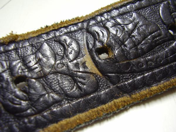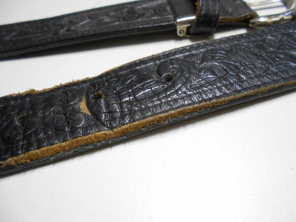 レザー ベルト 黒 革 スタンプ 花柄 中古 c840
