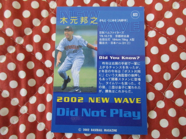★BBM 2002 NEW WAVE ②★ 823 木元邦之 日本ハムファイターズ ベースボールカード トレカ♪