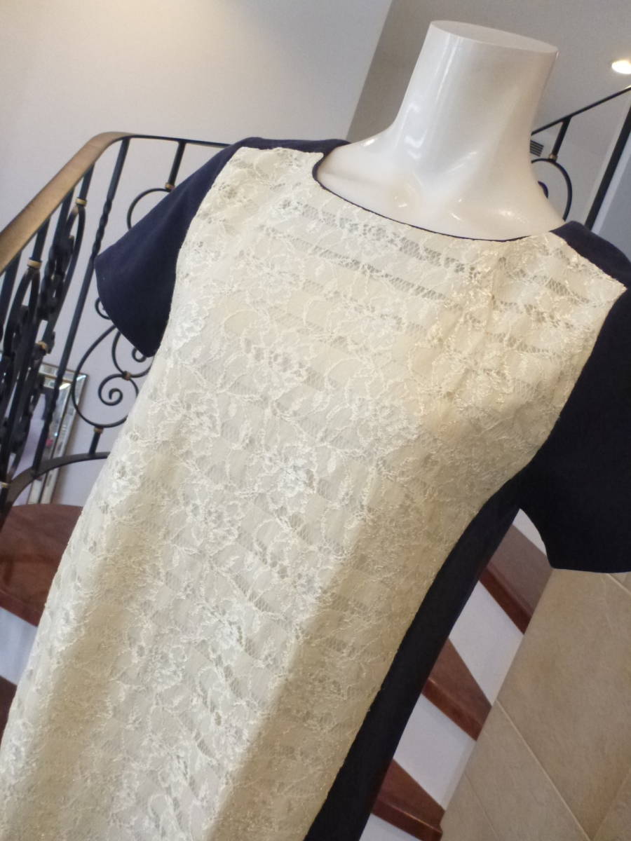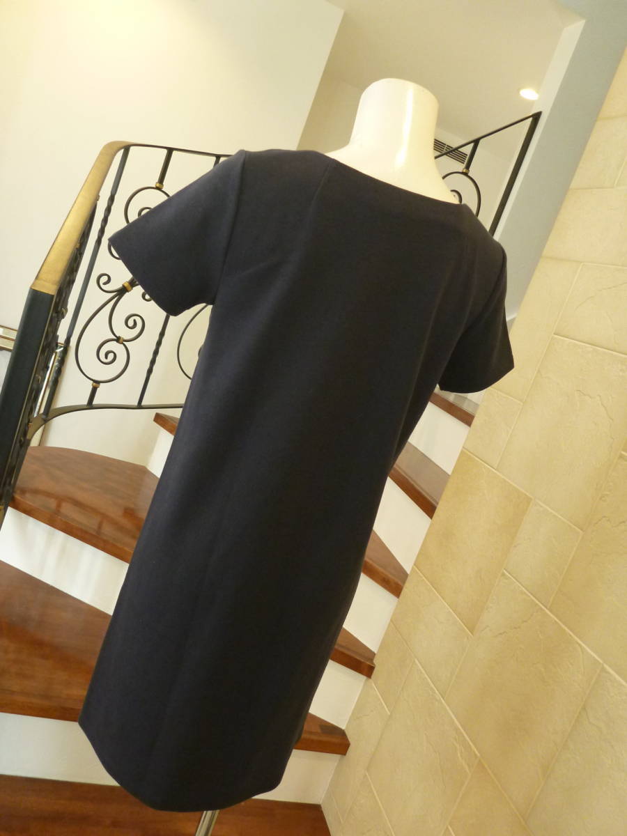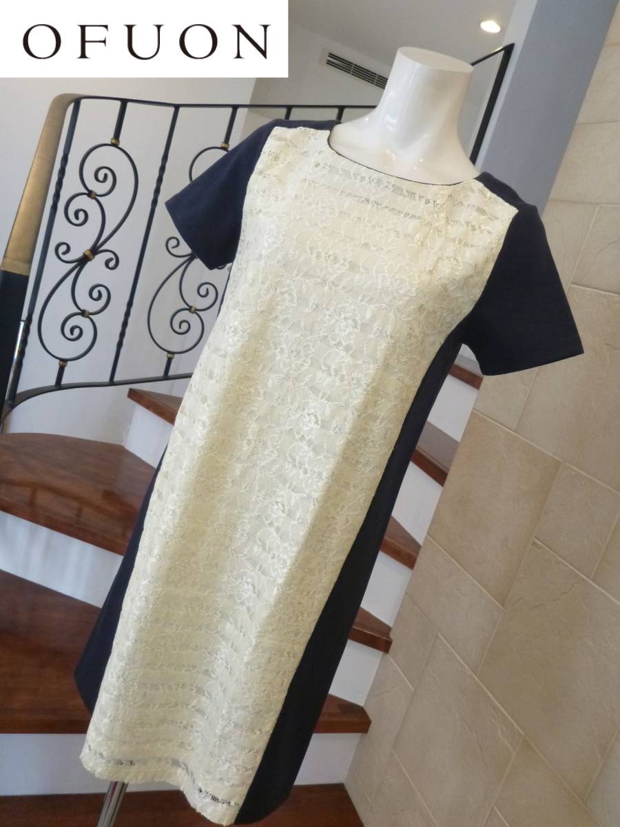 1.5万 美品 OFUON オフオン★紺×アイボリー ワンピース M相当