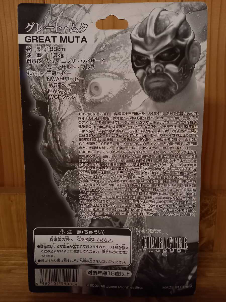 日本プロレス界が誇るレジェンドであり、ミステリアスな最強のヒールレスラー☆グレート・ムタの、超希少なブラックスケルトンタイプのフィギュア! 新品未開封のコンディションのいい美品になりますが、パッケージ左上部分に少しの折れ・ブリスター下部にヘコミが見られます 全ての画像で状態をご確認のうえ、ノークレームノーリターンでお願いします 入手困難なレア商品ですので、お早めにどうぞ☆ |