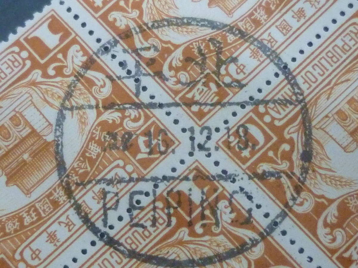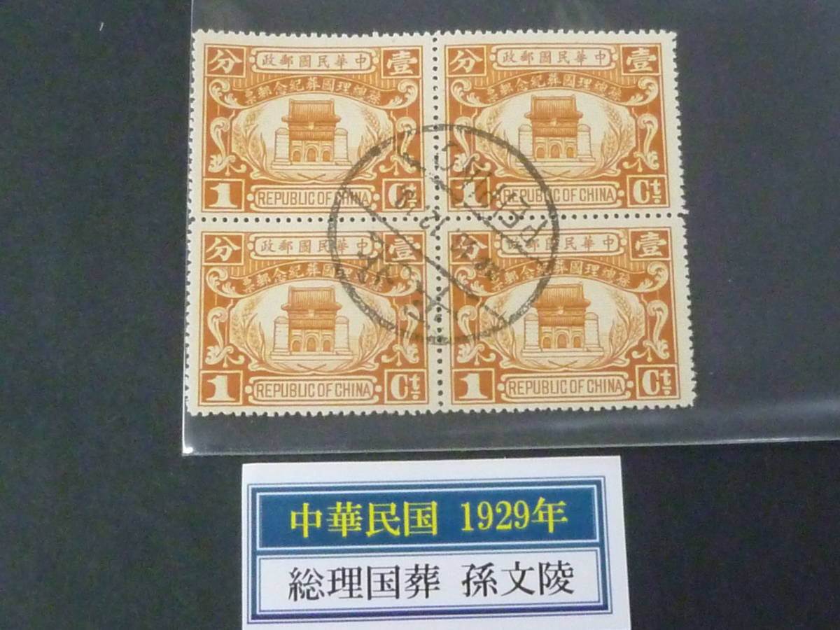 22 P 旧中国 中華民国切手 1929年 #345 総理国葬 孫文陵 1c 田型 印影大美消 消印「北平」
