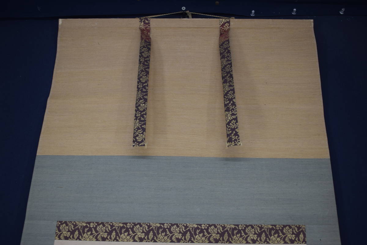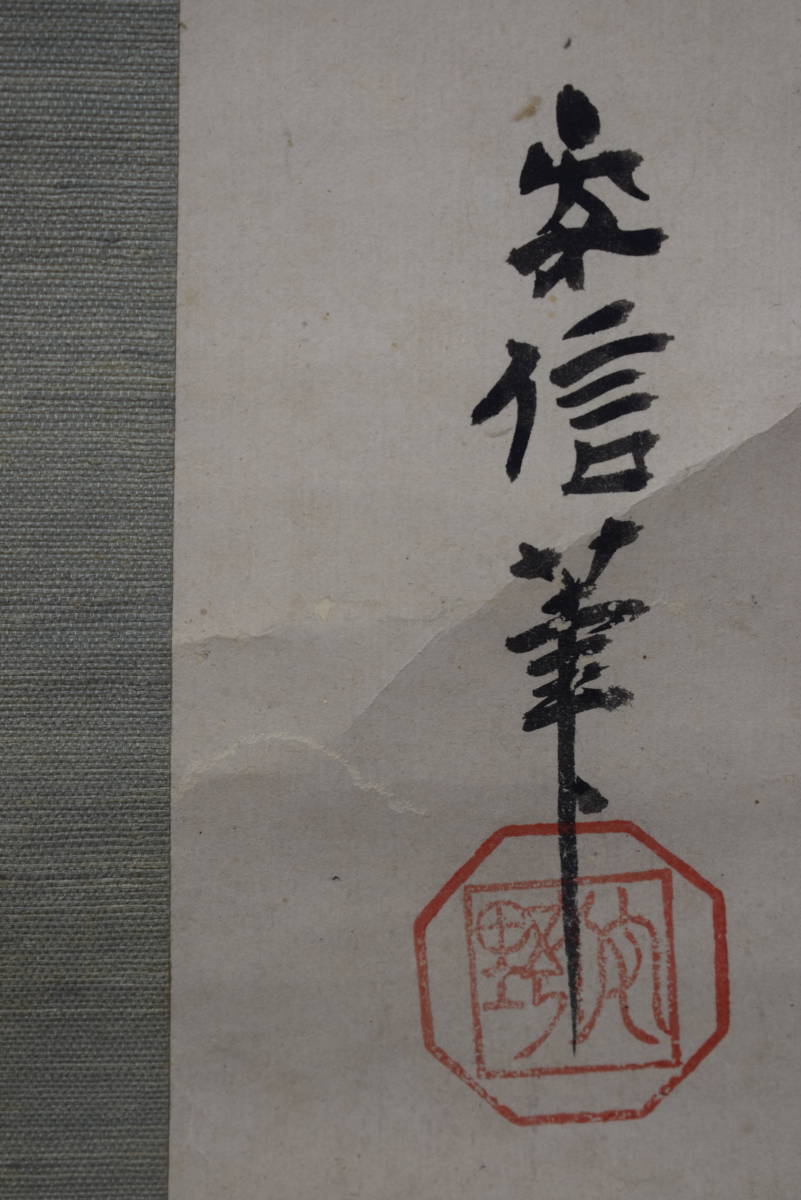 【作品状態】 本紙は紙本肉筆です。本紙は薄汚れ、汚れシミ、多少の時代感あり、折れ、巻シワあります。表装は多少の薄汚れ、巻シワあります。