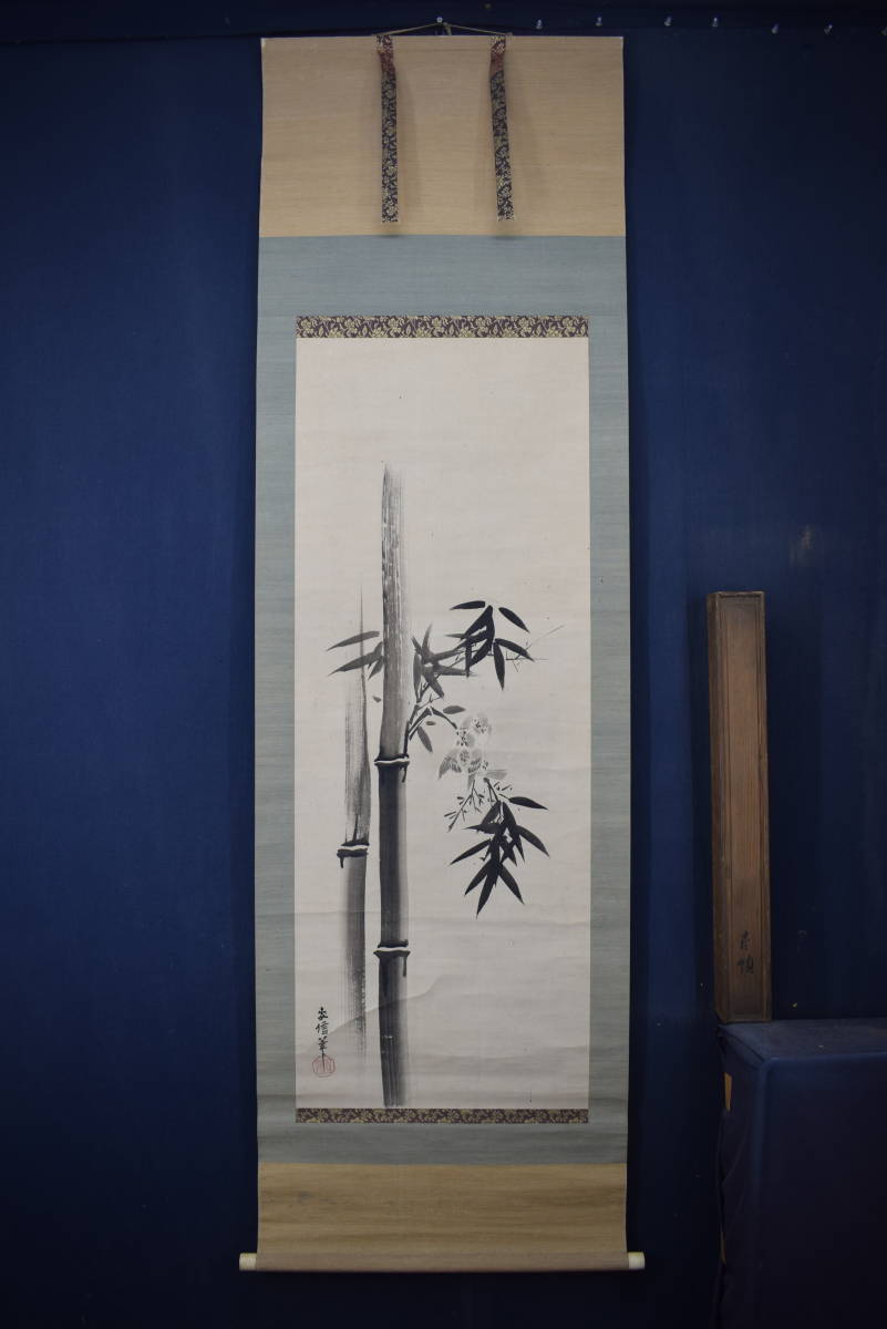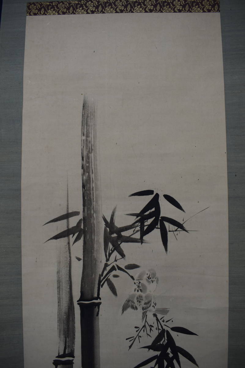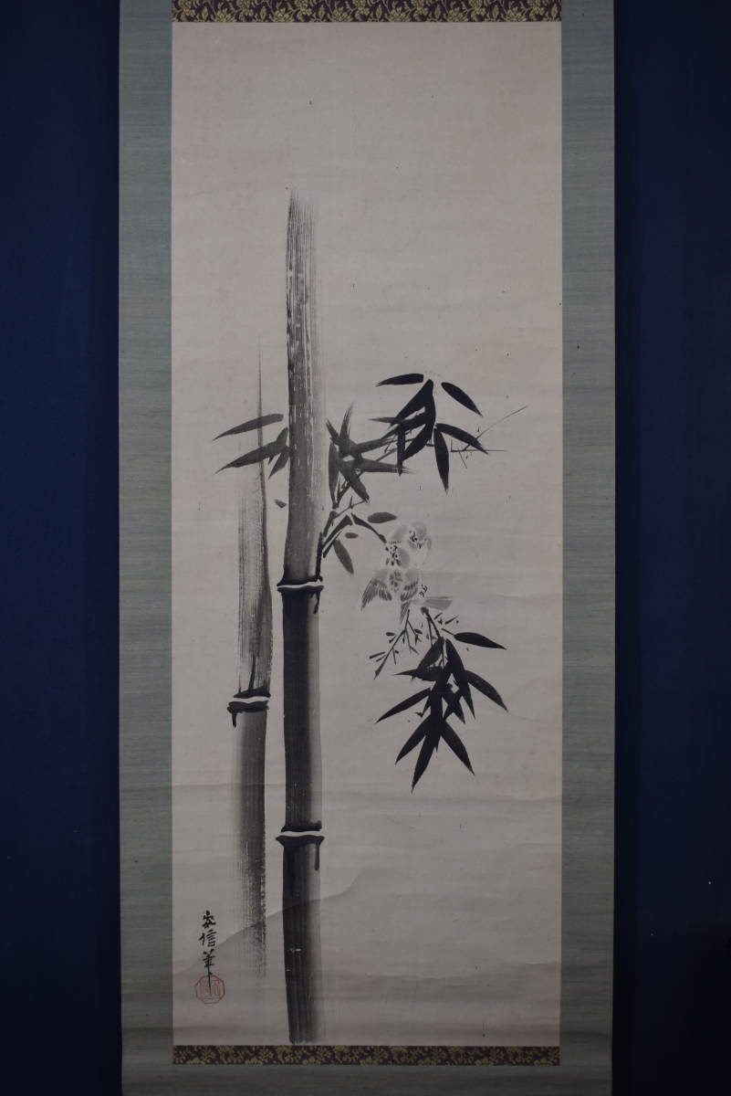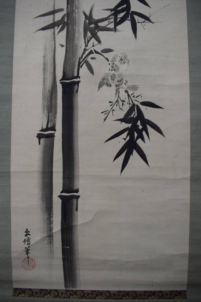 真作/狩野安信/竹に雀図/竹図/掛軸☆宝船☆Z-211