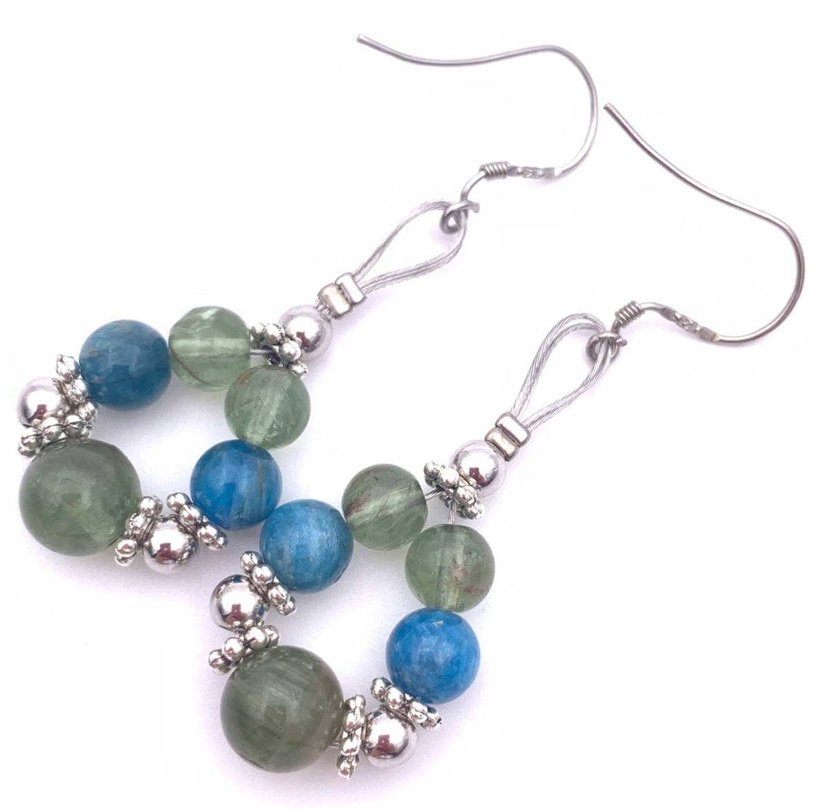手作り!オリジナル★天然石アパタイト&グリーンアパタイトのピアス