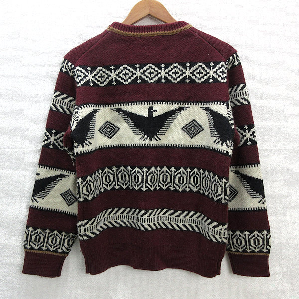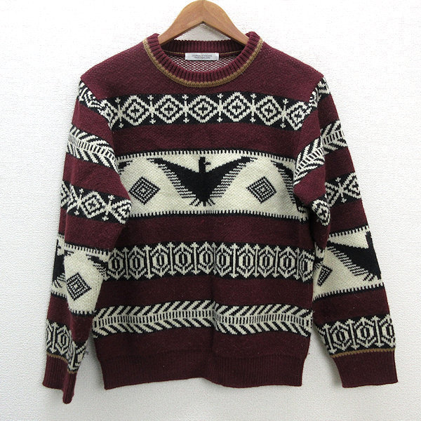k■ジャーナルスタンダード/JOURNAL STANDARD バード柄ニットセーター【S】エンジ/MENS■40【中古】