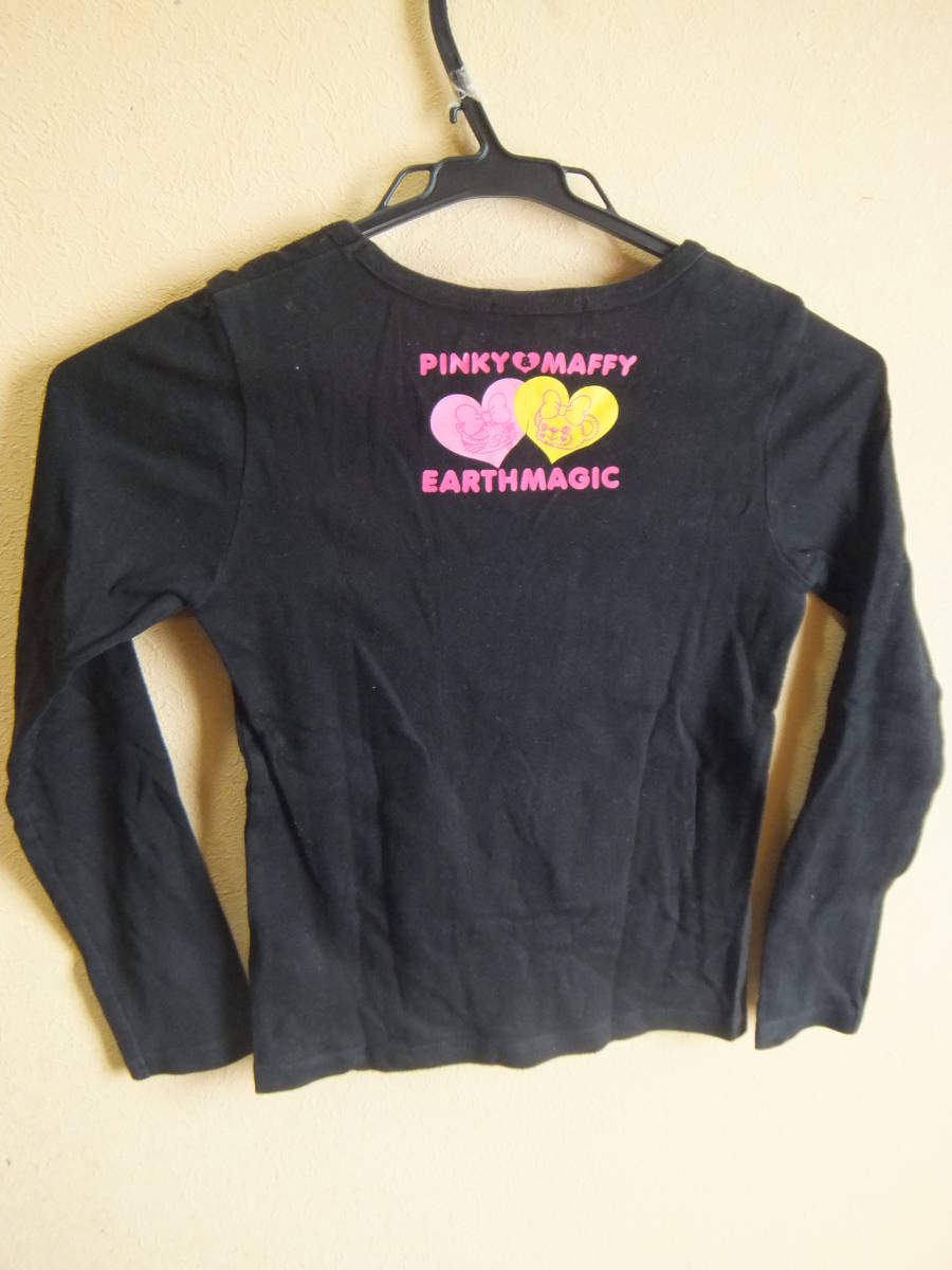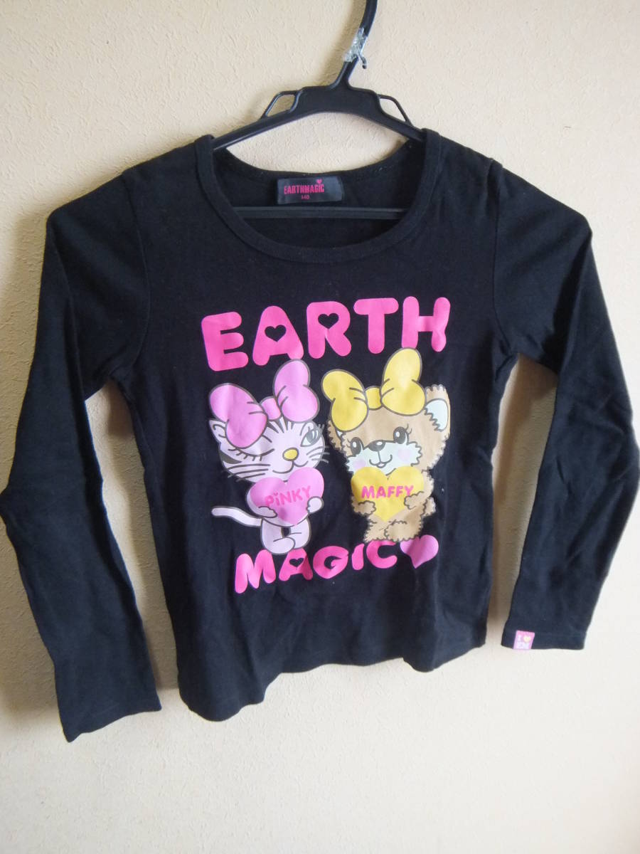 状態は、着用感とほこりの付着多少、プリント割れごくごく若干程度、問題なくお使いいただけます。 サイズは140、平置きで、身幅約36cm、着丈約46cmです。 注)画像の丸い丸はフラッシュの加減で、汚れなどではございません |