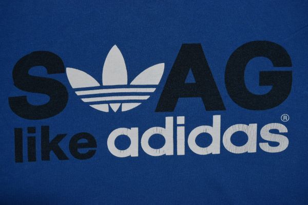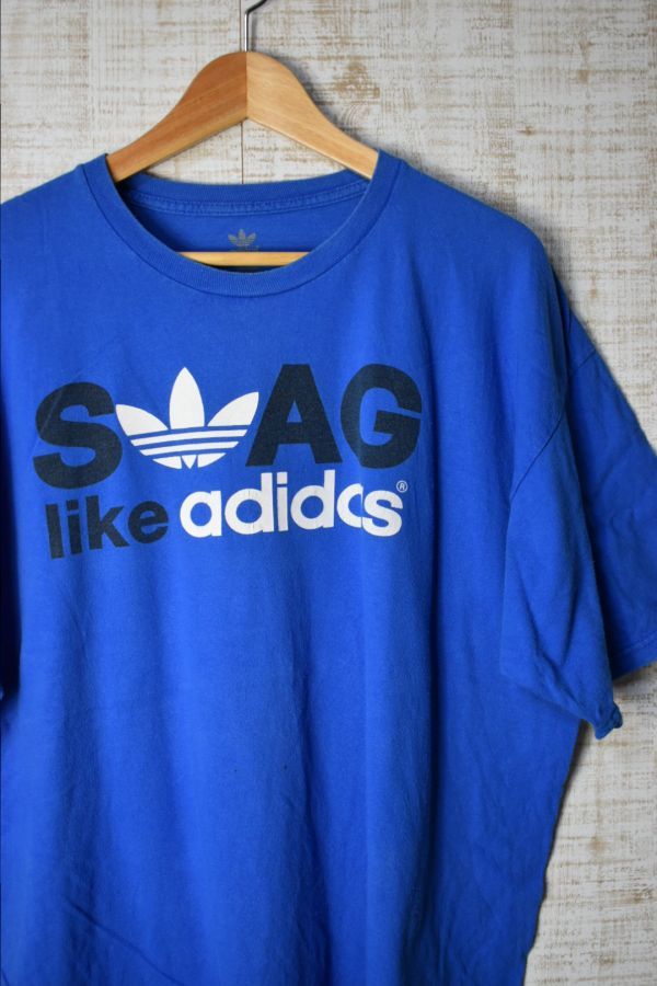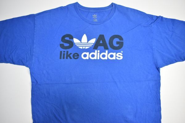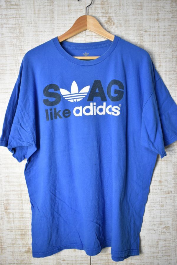 ●US USED ビッグサイズ US古着 adidas アディダス トレフォイル 三つ葉マーク プリント Tシャツ ブルー青【XL】