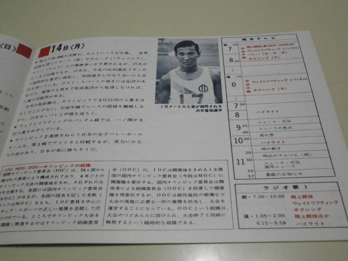 メキシコオリンピック 1968 NHK オリンピック 放送時刻表 当時物 JOC-68-C-0168