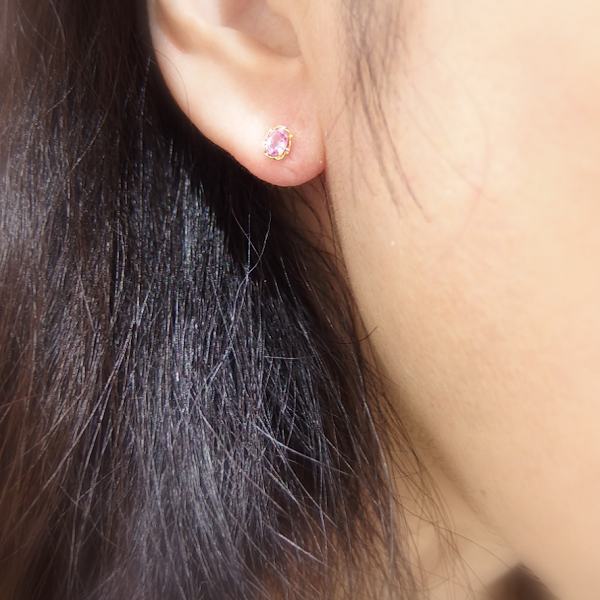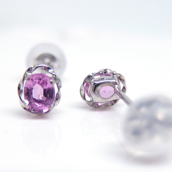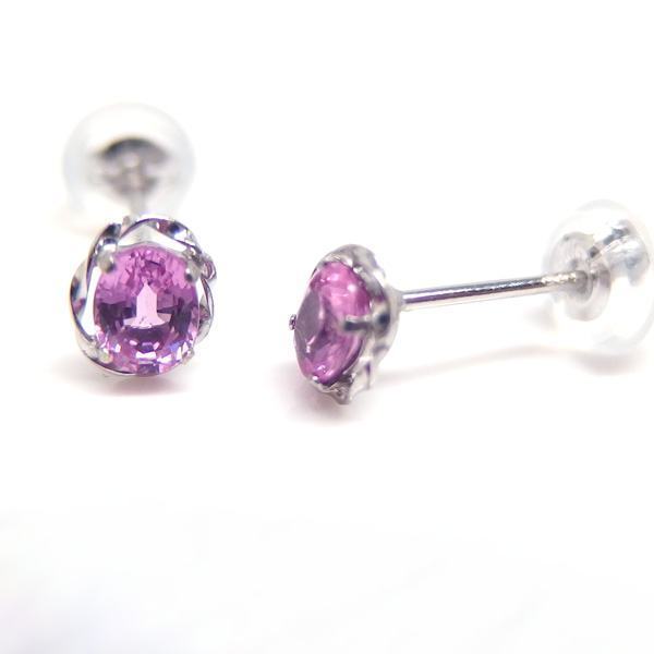 濃い色味と透明感を併せ持つ、上質のピンクサファイアのスタッドピアスです。