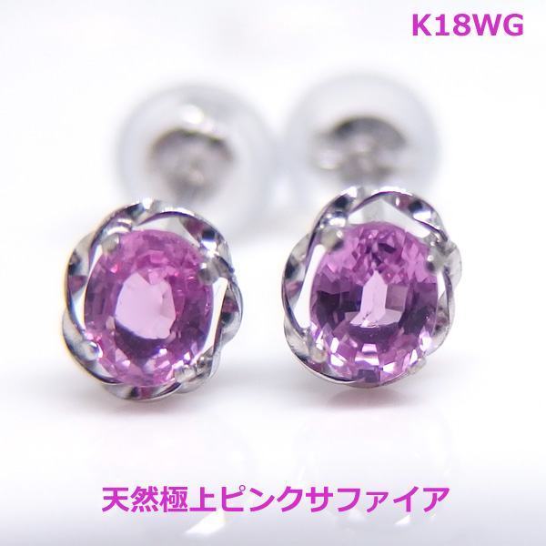 【送料無料】 K18WG上質ピンクサファイアデザインピアス■1808