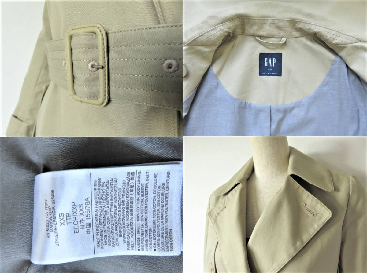 ■新品同様 【 GAP 】ギャップ 高級 トレンチコート ベージュ コットントレンチコート XXS 上質美品 c709
