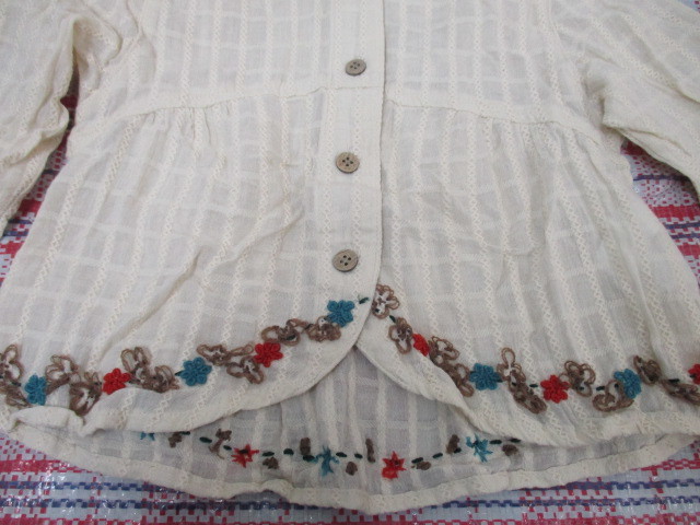 ★女の子 peda&mada 長袖ブラウス 前ボタン 透け感 刺繍入り 生成り(110)