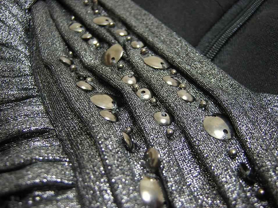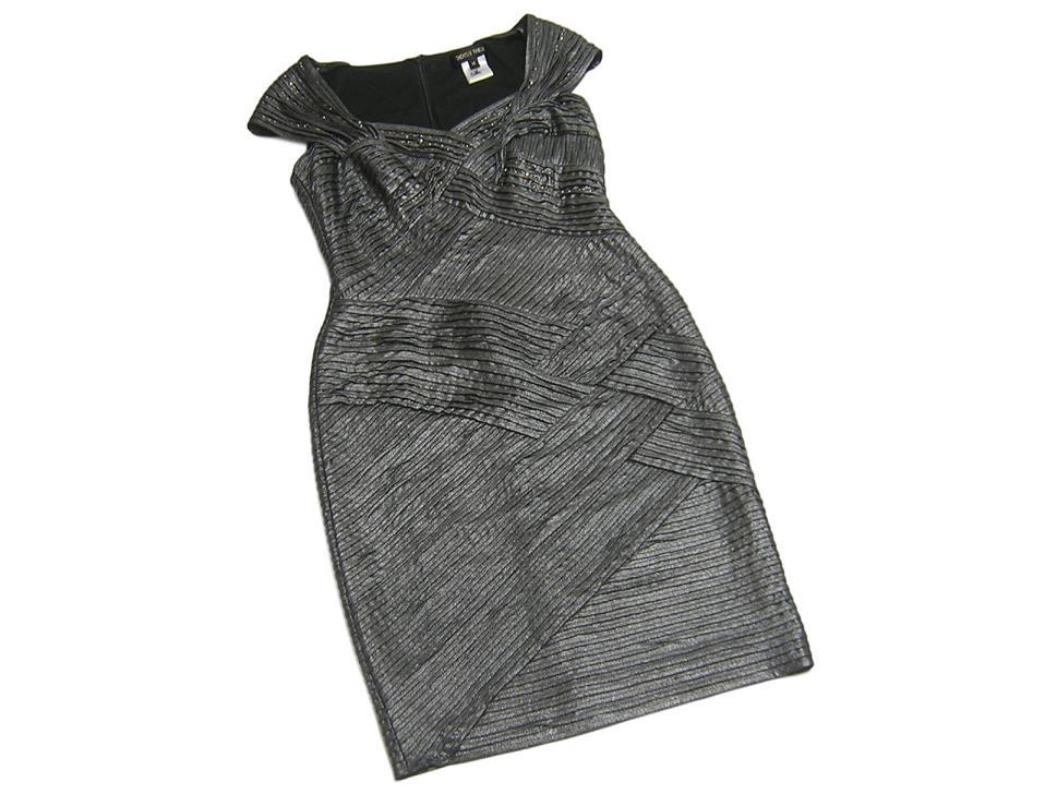 TADASHI SHOJI の、 ビーズ付きメタリックドレスでございます。 伸縮性あり/総裏地/バックファスナー | |