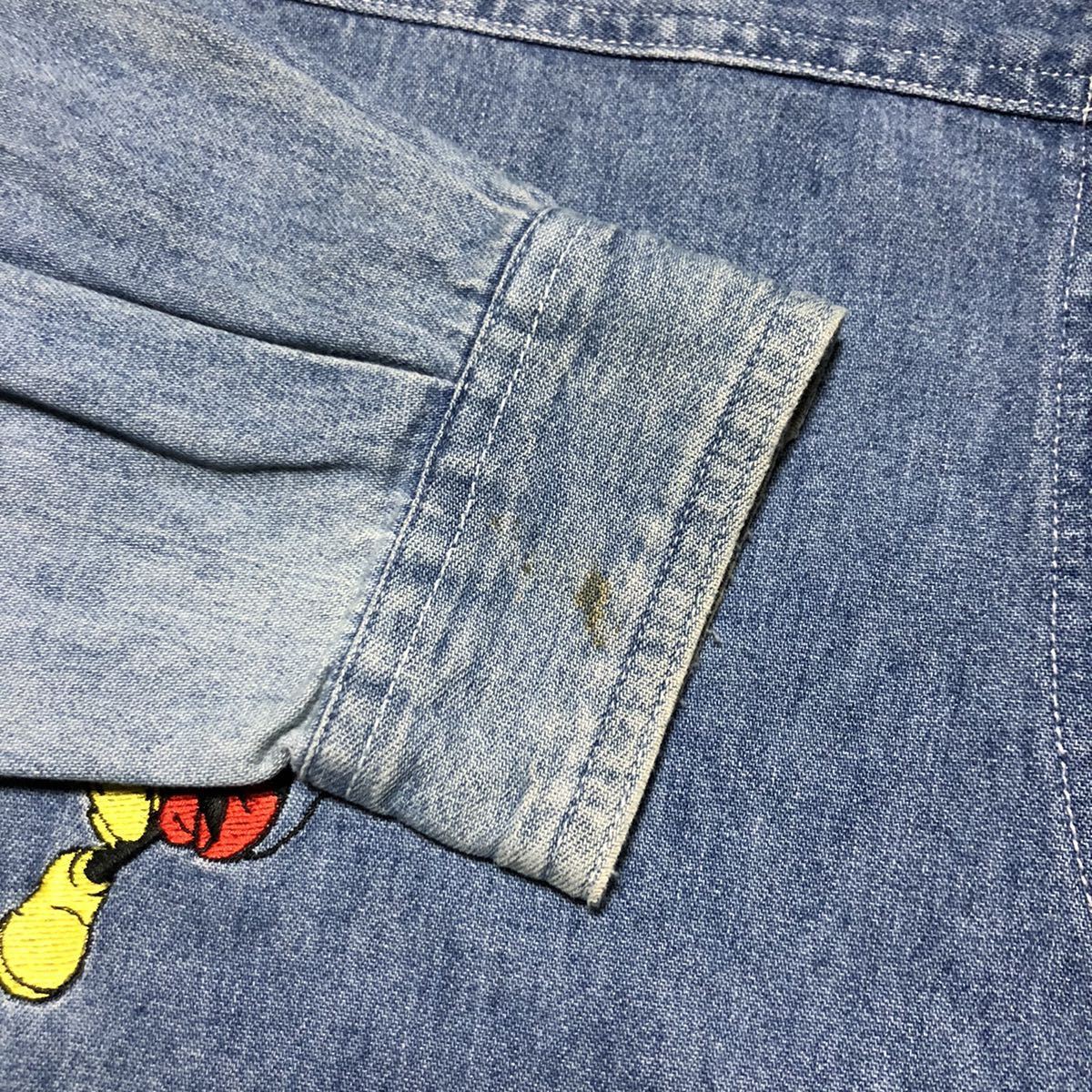 ★ DISNEY ディズニー MICKEY ミッキー 刺繍 デニムシャツ 長袖シャツ M レディース