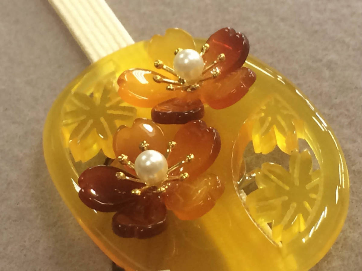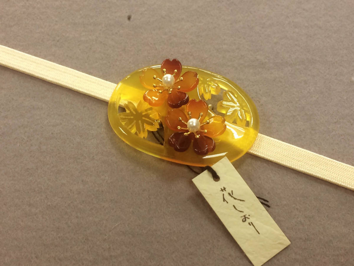京都『大原商店』◆おしゃれ着やパーティーおしゃれな帯留め(べっこう風飴色/桜)