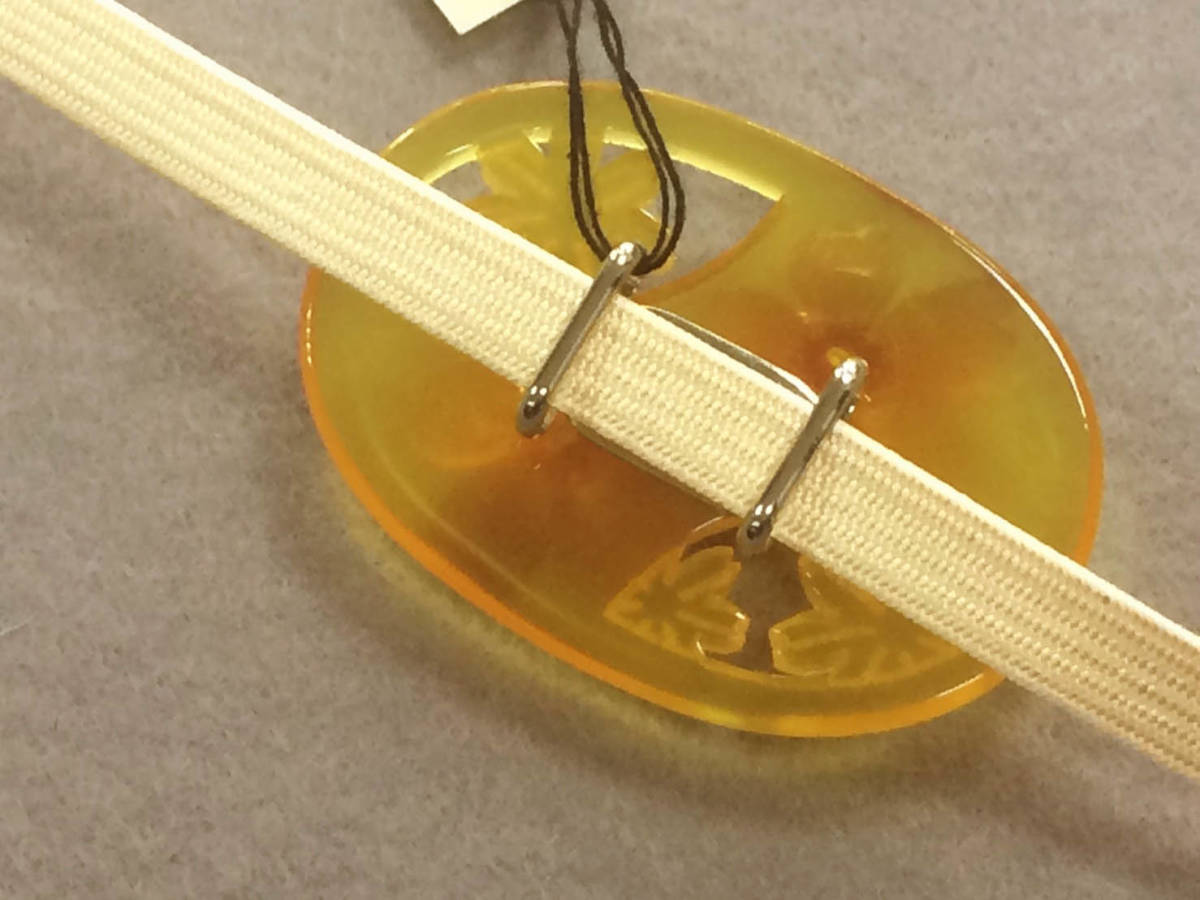 留め金の幅は約1.5cm 後ろは3分紐から5分紐まで通せます。