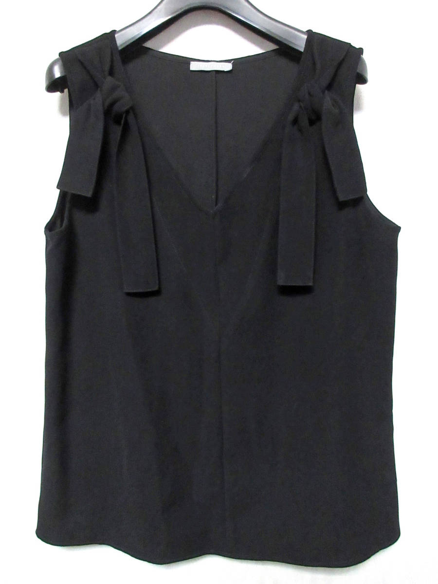 セオリーリュクス theory luxe 肩リボン ノースリーブ カットソー 黒 ブラック 40 亥673