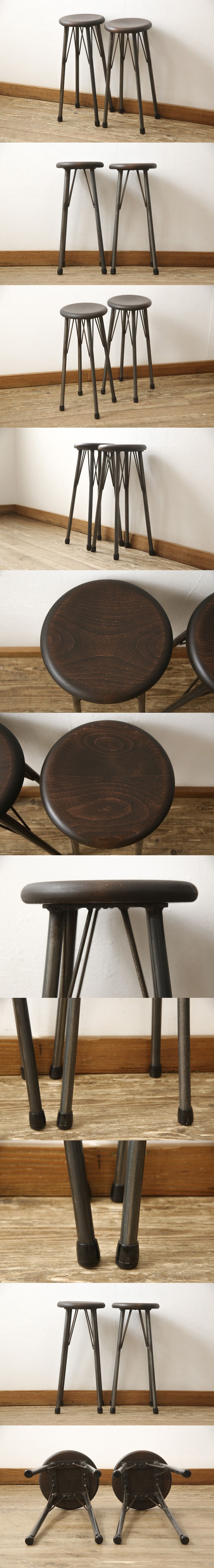 R-059697 オリジナル 異素材の組み合わせがかっこいい雰囲気を醸し出すハイスツール2脚セット(椅子、イス、板座チェア)(R-059697)