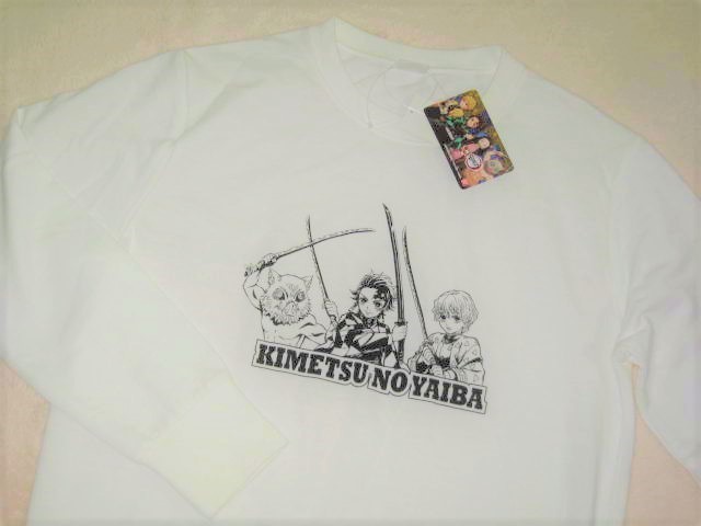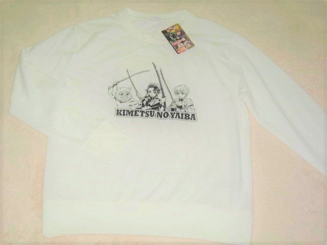 150  新品 鬼滅の刃 炭次郎 善逸 伊之助 白 スエット トレーナー  バンダイ