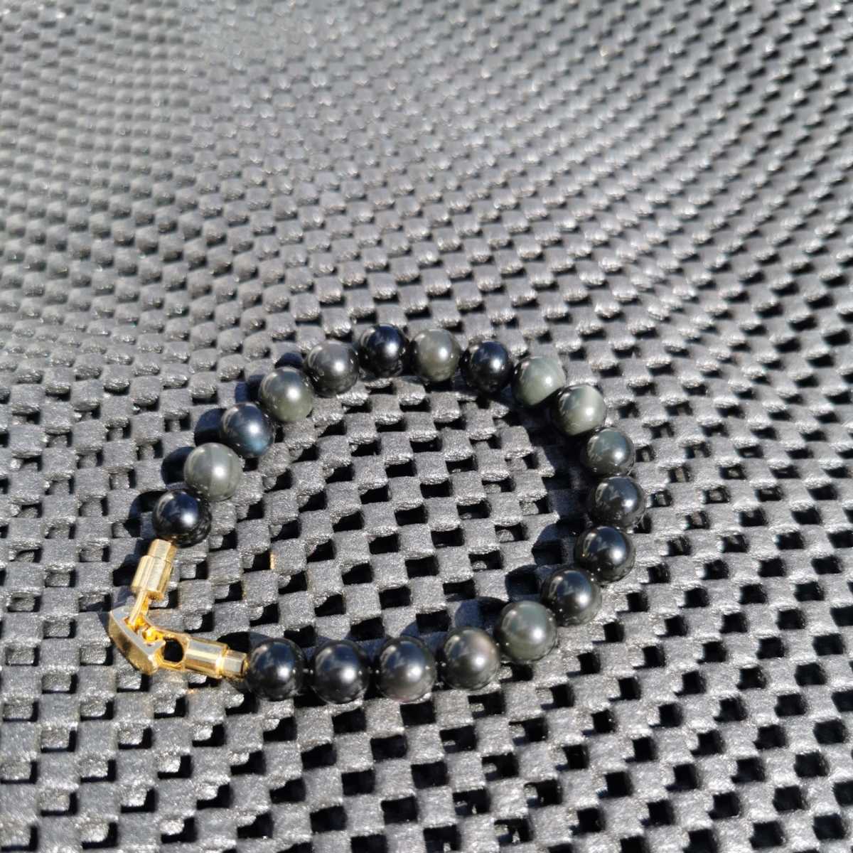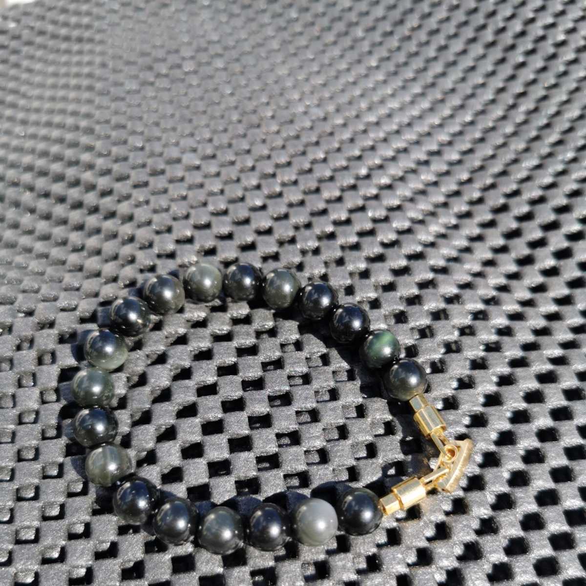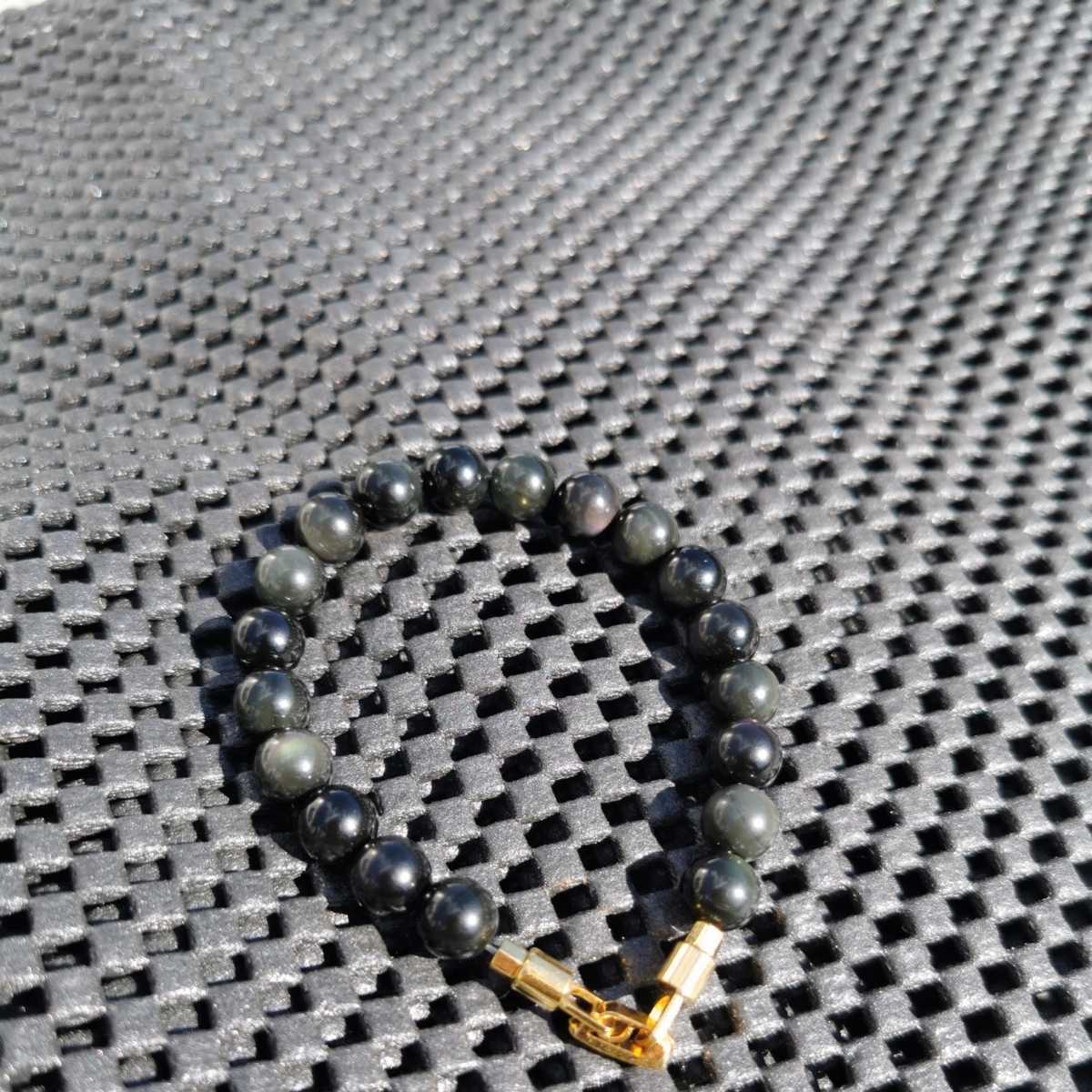 レインボーオブシディアン8ミリ15センチブレスレット!留め具は中折れ式です!中はナイロンコートワイヤーです!光のあたり方角度で見え方が違い素晴らしいです!送料無料宜しくお願いします!