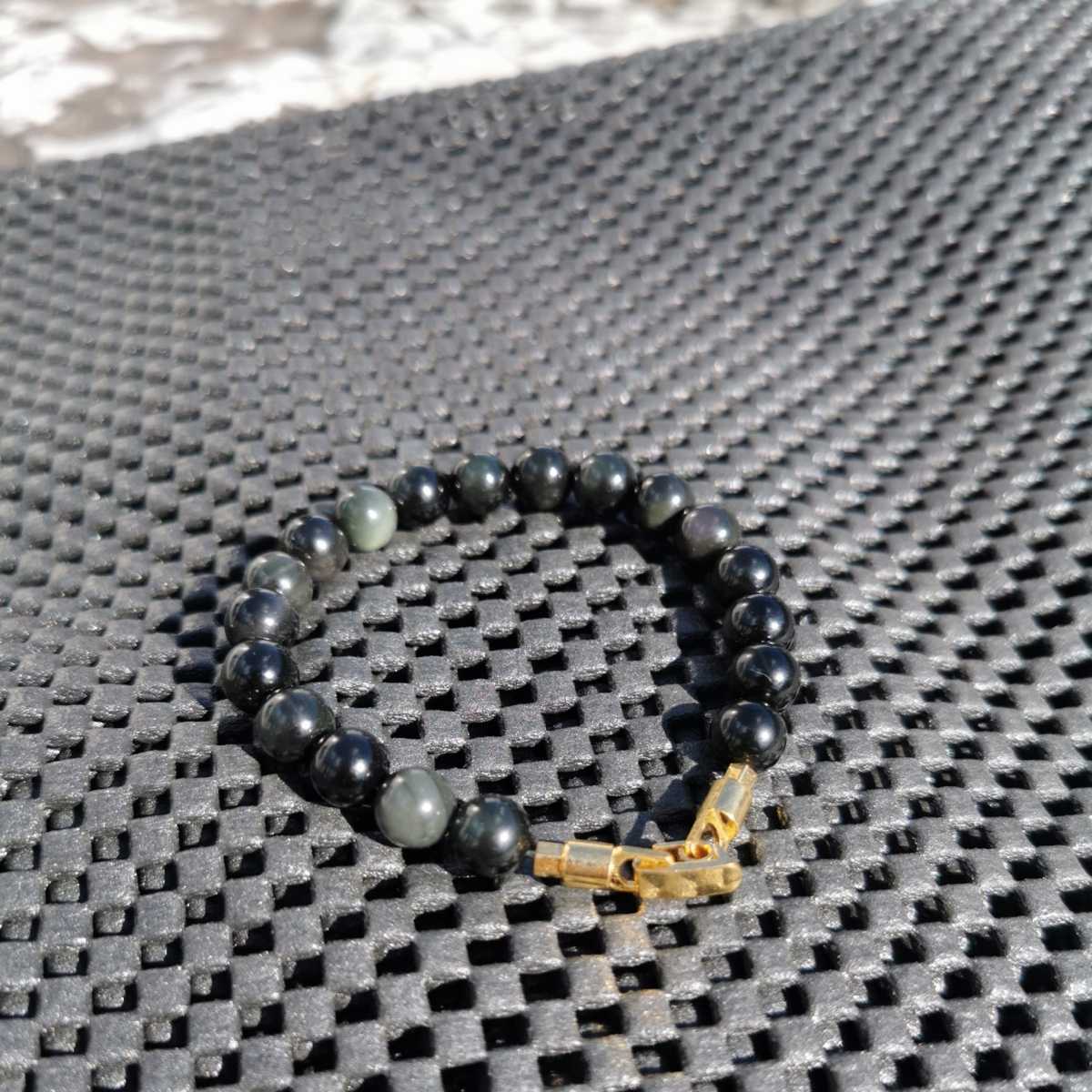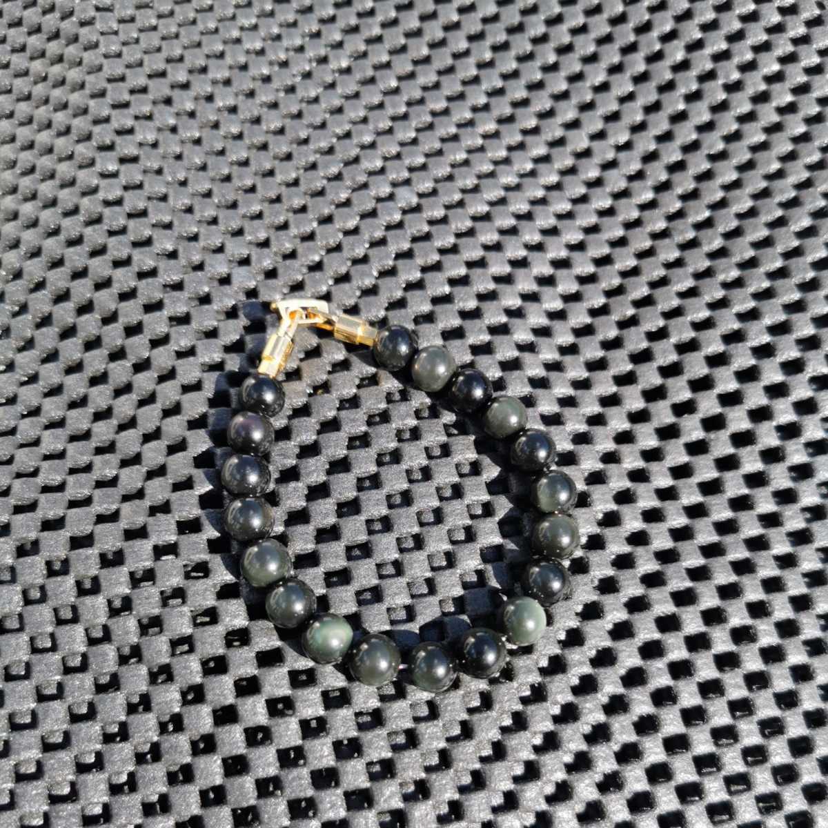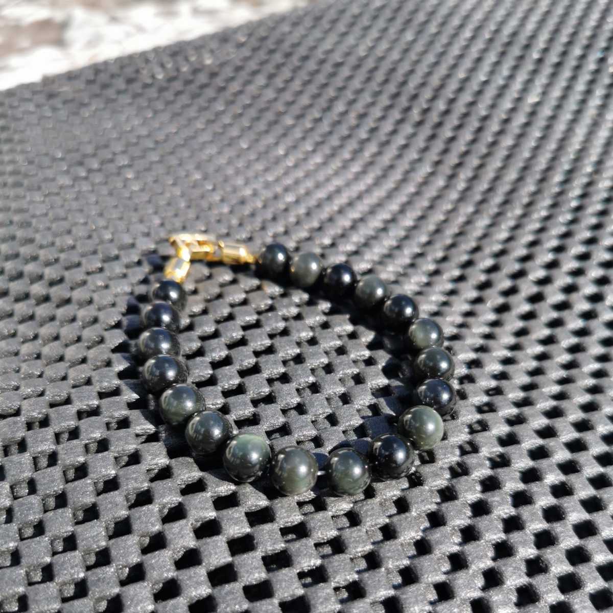 レインボーオブシディアン8ミリ15センチブレスレット!留め具は中折れ式です!中はナイロンコートワイヤーです!光のあたり方角度で見え方が違い素晴らしいです!送料無料宜しくお願いします!