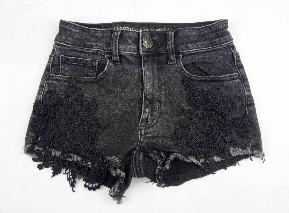 ★送料無料・即決★【中古美品】デニムショートパンツ ブラック【American Eagle】 SP2-8