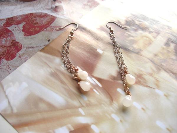 ルーズ・シルエット・・シリーズです♪ピンク色の魔法・・ロマンチックなピーチクォーツのピアスです♪フラットドロップのピーチクォーツにピンクゴールドのチェーンを合わせて大人可愛い表情です♪6×8ミリ位のフラットド ロップのピーチクォーツをランダムに紡いでいます♪長さは全長9センチ位です♪イヤリングにも変更出来ます♪お揃 いのネックレスやブレスレットも出品しています♪シンプルで飽きのこないいつまでも着けられ るデザインを考えて作りました!ハンドメイドをご理解頂いてノークレーム、ノーリターンでお願いします