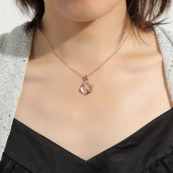 ◆ぬくもりのあるストーンの煌めきと永遠に愛されるオープンハートフォルムを配置したネックレス