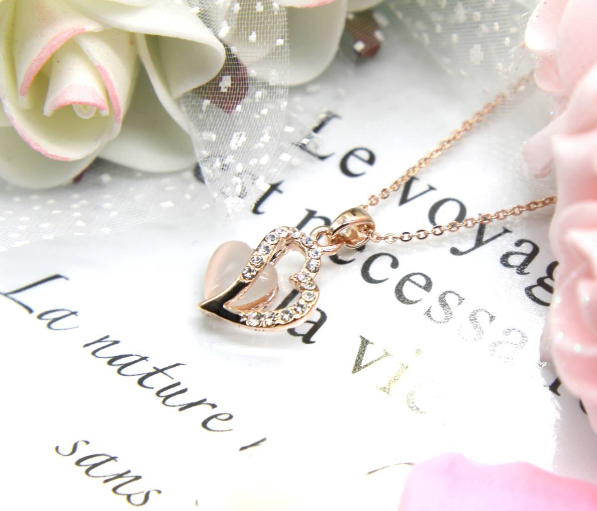 ◆肌馴染みの良いピンクゴールドのオープンハートは、永遠に愛される象徴のネックレスです