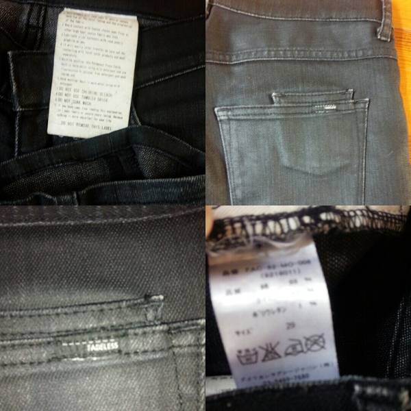 ブラックカラー、綿88%ナイロン11%ポリウレタン1%、ジッパーフライ、脇割り、size表記29、実寸ウエスト約40センチ股上約20センチ(ローライズ)裾幅約17.5センチ股下約72センチいずれも平おき寸法です。破れや穴無く状態普通です。非常に細身のシルエットでストレッチの効いた品質高い品物です。画像自己紹介ご覧になりご検討宜しくお願い致します。