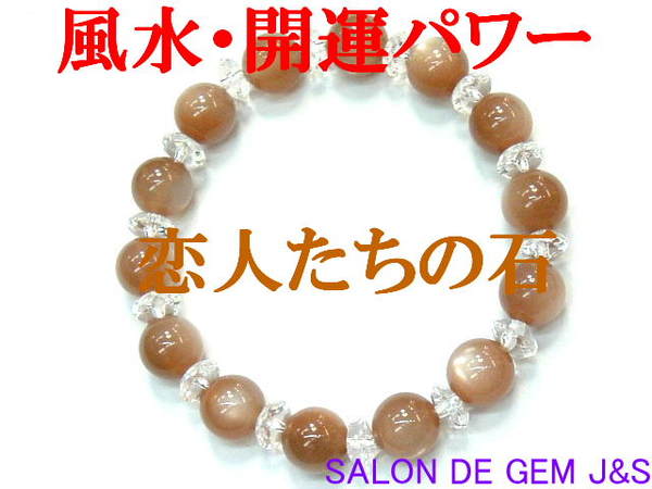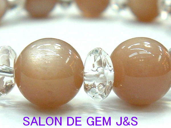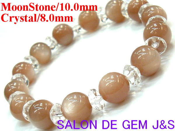【上質】【恋人達の石】【高級天然オレンジムーンストーン/天然クリスタル 風水・開運ブレスレット】10.0-8.0mm/16cm