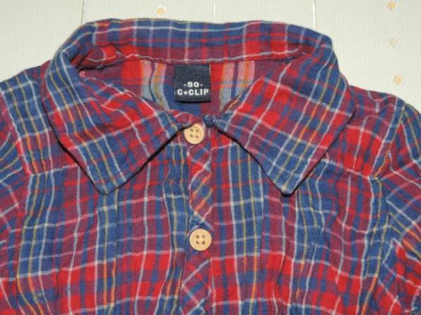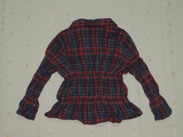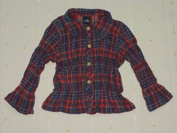 ♪赤×青チェックの長袖あったか素材シャツ☆90センチ☆