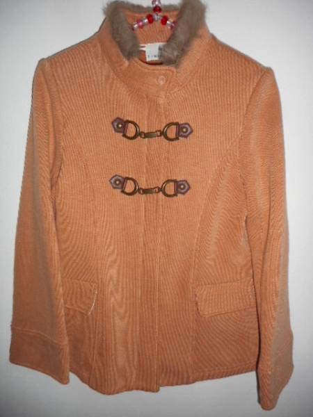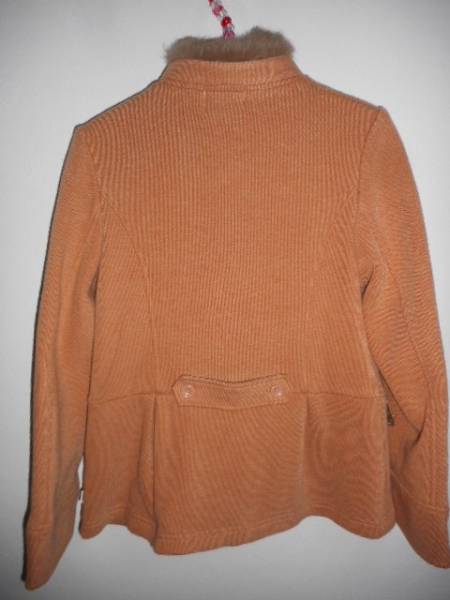 【ブランド・形態】 KUMIKYOKU 組曲 オンワード樫山です。 【カラー】 ベージュ、薄茶系です。サハラ sahara #e29676が近い色合いです。 色見本⇒ 【特徴・状態】 ハイネックの裏起毛のジャケットです。 ラビットファー付き(取り外し可能)で、フロントフルジップのファスナーが見えないよう 比翼仕立てになっていて、その上からビット金具で留めるおしゃれで凝ったデザインです。 後ろから見てもベルト付でとても可愛いです。 ファーを取り外したら手洗い可能です。 (写真参照) 少々の使用感程度有りますが、特に目立つようなシミ・ヨゴレなどはないです。 問題なくご愛用いただける状態かと思います。 光の加減で、白っぽく写った写真も有りますが、濃い写真が近い色合いです。 【素材】 表地、アクリル82%、テンセル18%です。 (写真参照) 【記載サイズ】 サイズはTL(T150-160、B75-83)となっておりますが実寸も参考にして下さい。 【実寸サイズ】{平置き採寸} 縮みや伸びが生じている場合がありますので実寸サイズをご参照ください。 着丈 : 約59cm (背面襟下から裾まで) 肩幅 : 約39cm (両肩を直線で結んだ線) 身幅 : 約43cm (両脇を直線で結んだ線) 袖丈 : 約56cm (肩縫い目から袖先まで ) 尚、素人採寸です多少の誤差はご了承下さい。 裄丈 : 約‐‐‐cm (後衿ぐり中央から肩先までを水平に計った長さと、 肩先から袖口までを足した値 ) ◎わきの下からそで先まで約‐‐‐cmです。 | |||