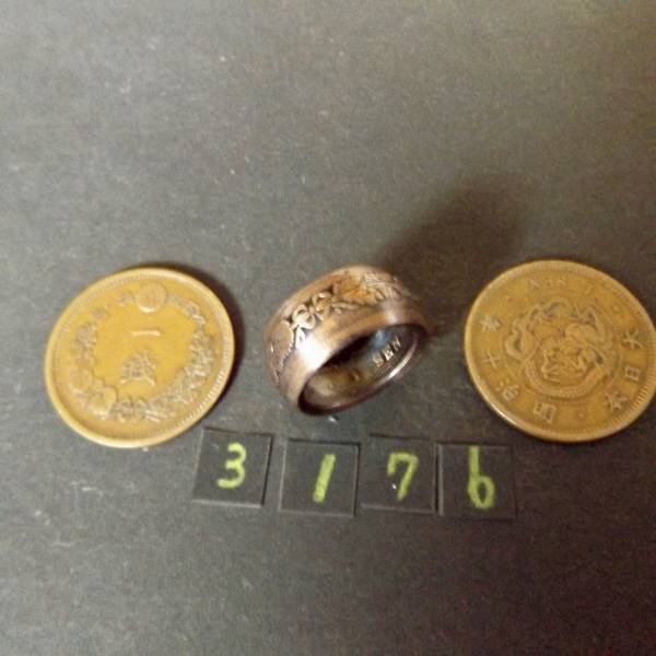 9号  コインリング  竜1銭銅貨  ハンドメイド 指輪 (3176)