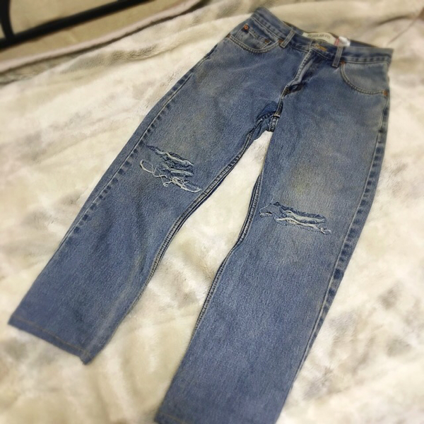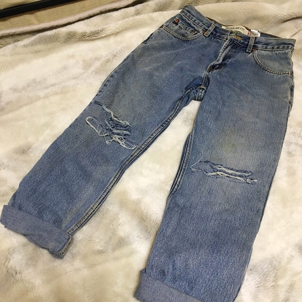 ヴィンテージ感漂う色合いと膝辺りのクラッシュ具合がとてもお洒落なジーンズです