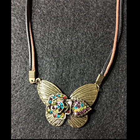 こちらは、彫金ペンダントトップをアンティーク風に仕上げたお洒落な革ひもネックレスです。