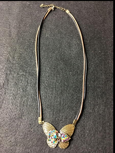 彫金 ペンダント ネックレス 2連革ひも アンティーク風 ⑧